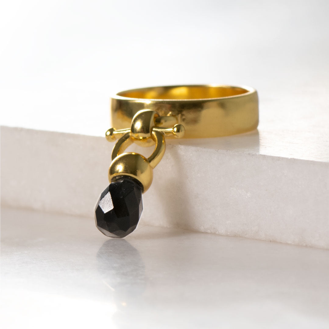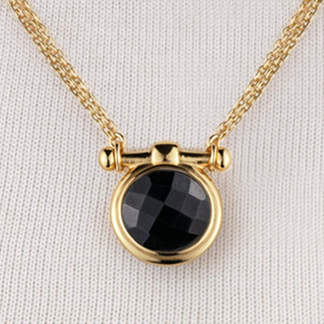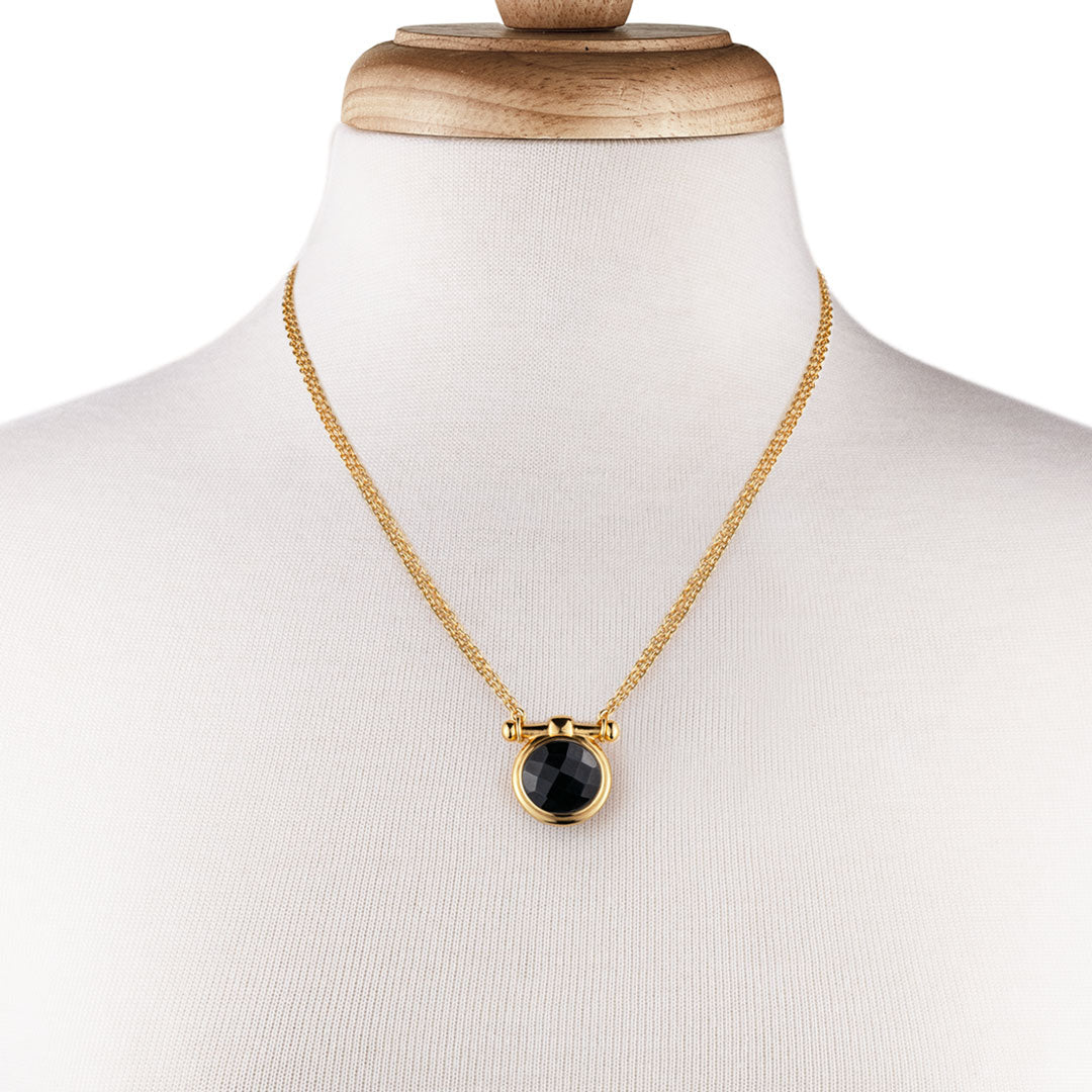 Adele - Black Onyx Equestrian Horse Bit Necklace in Gold