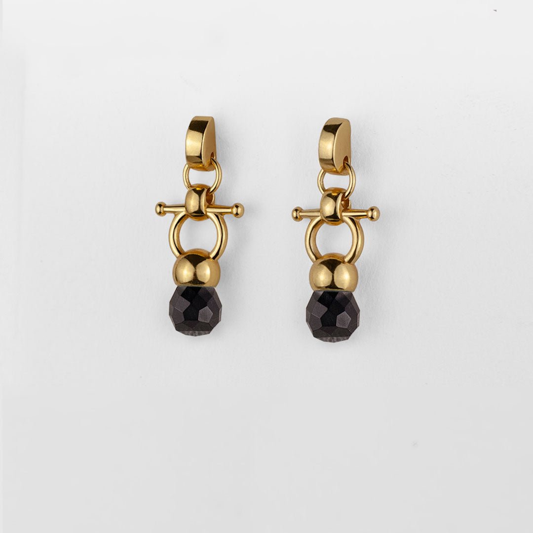 Brioette - Black Onyx Horse Bit Earring Equestrian in Gold