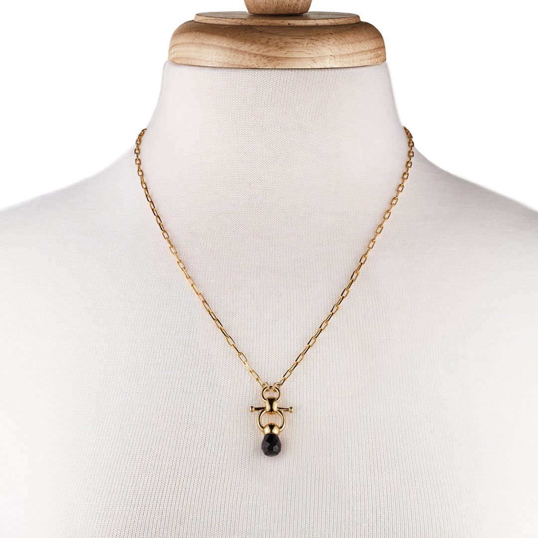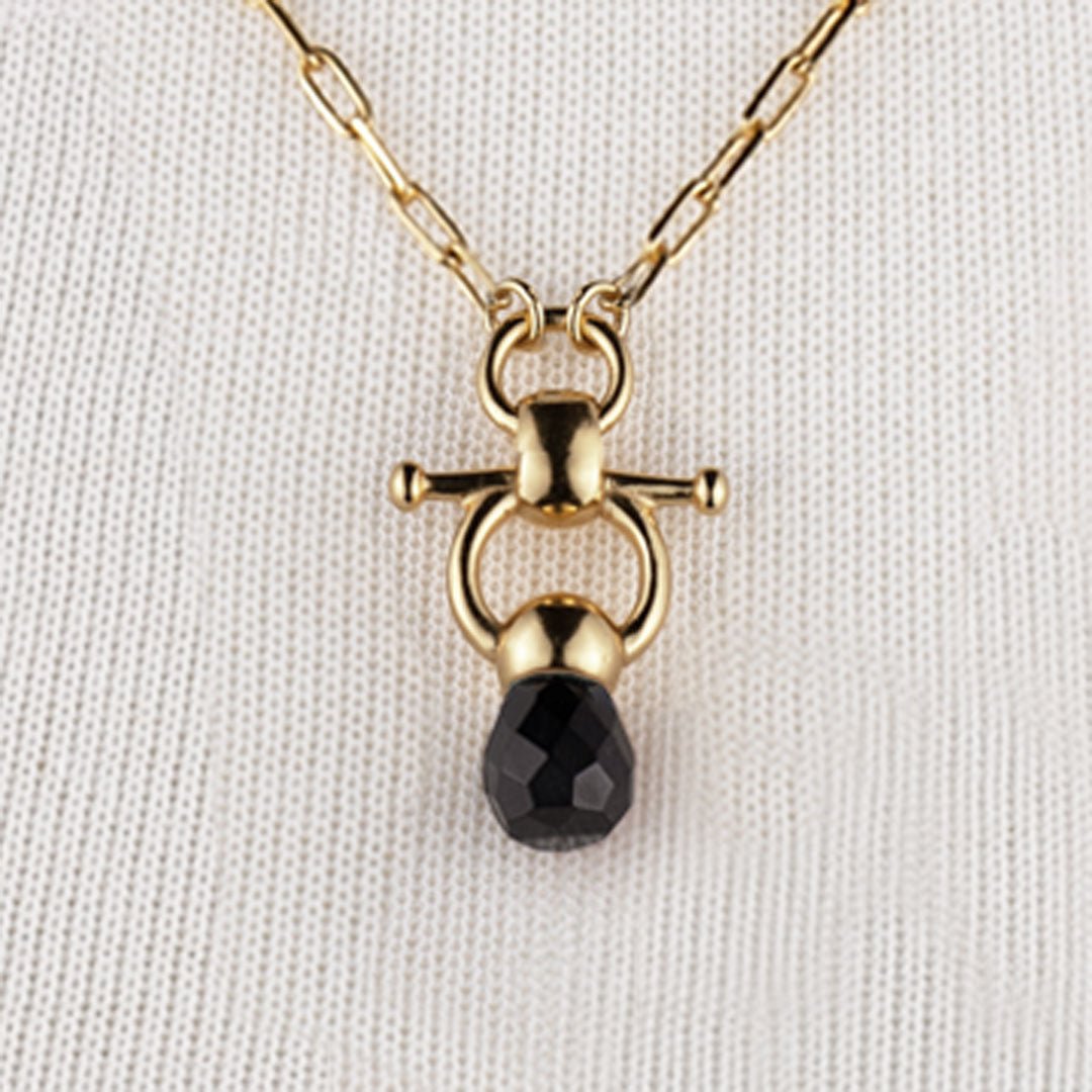 Brioletrte - Black Onyx Equestrian Horse Bit Necklace in Gold