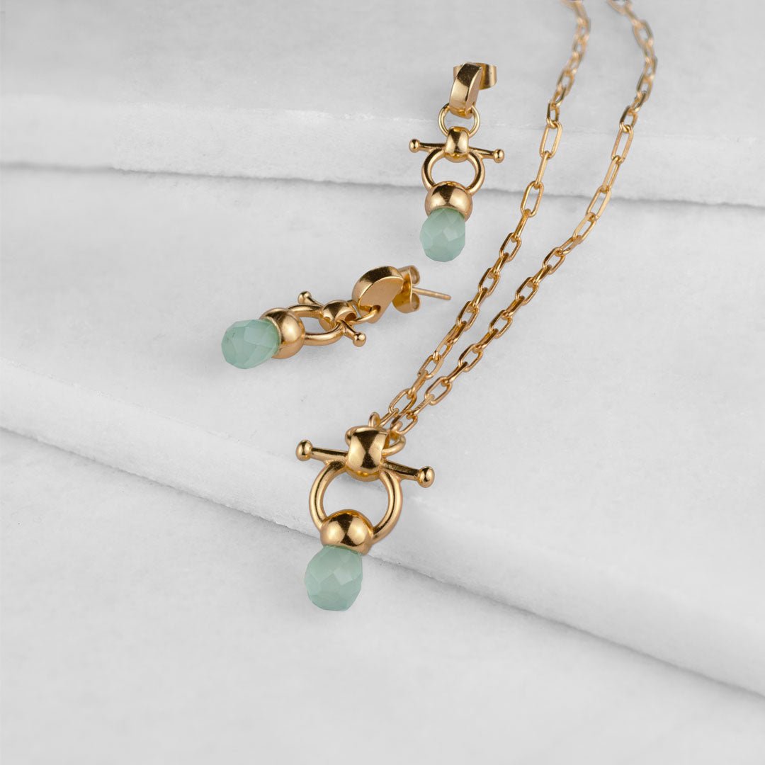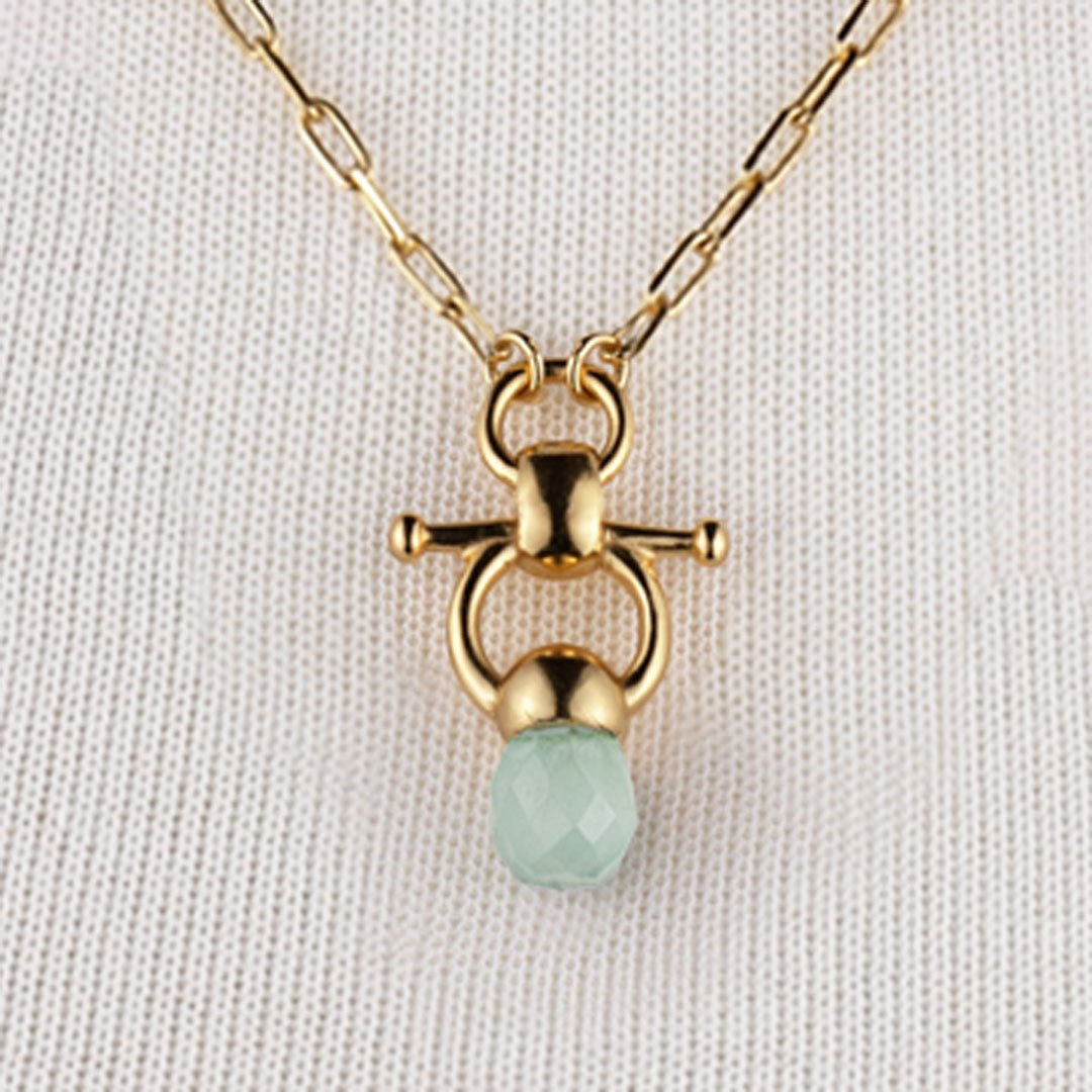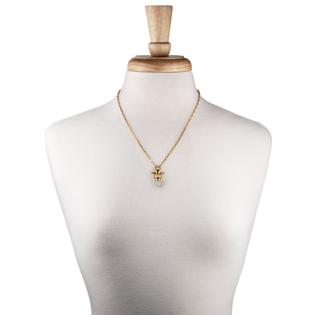 Briolette - Aqua Chalcedony Equestrian Horse Bit Necklace in Gold