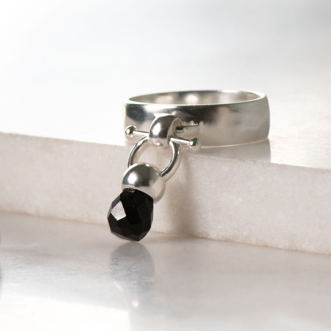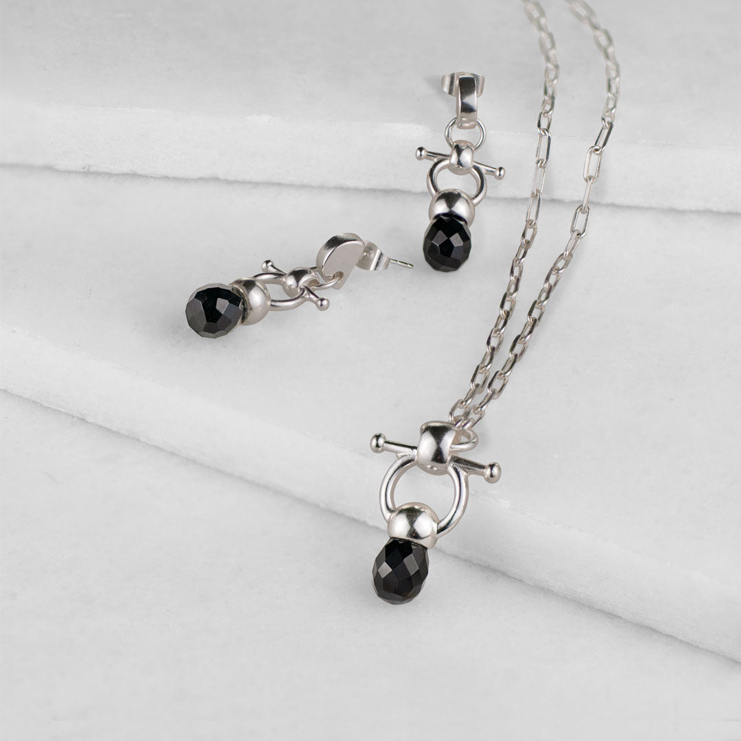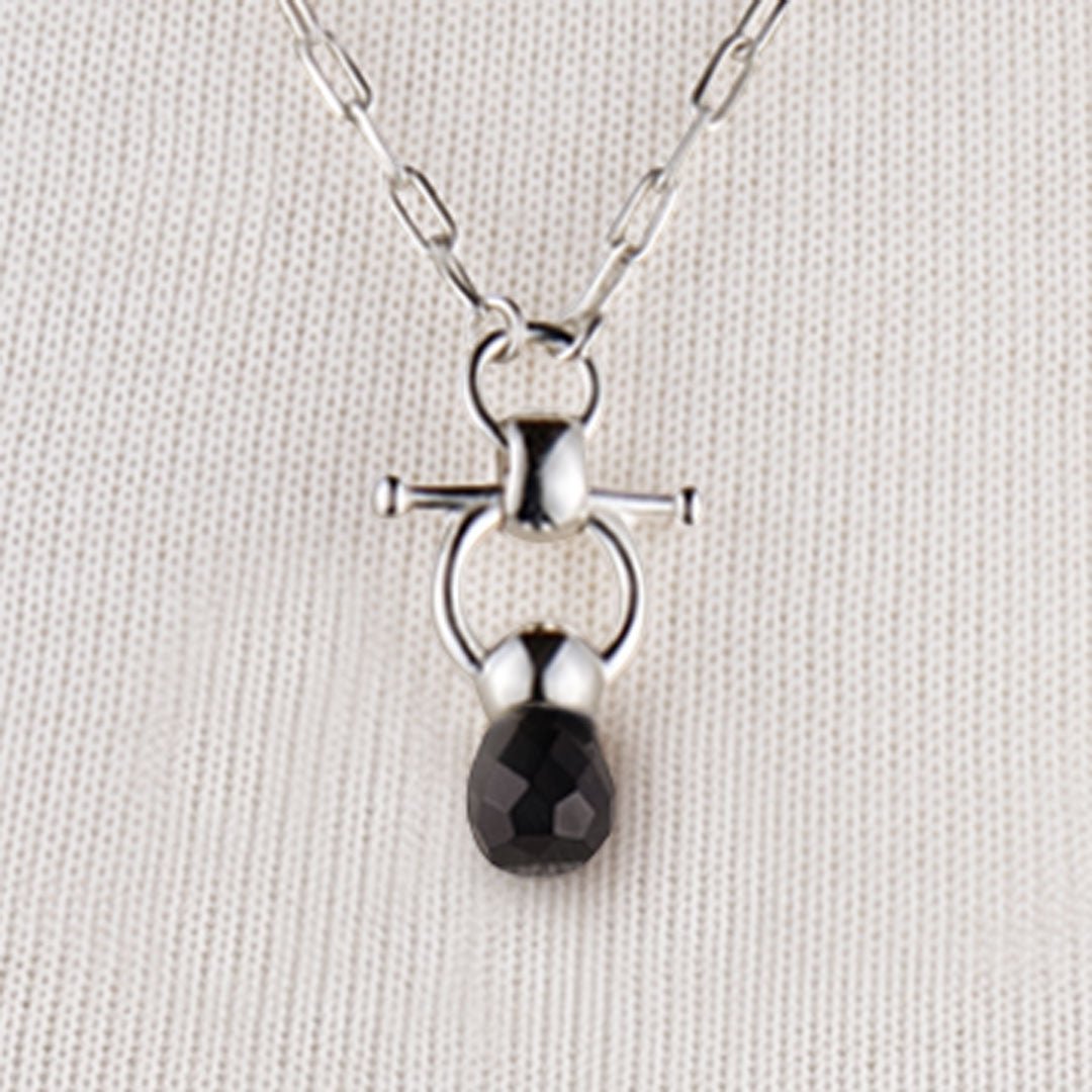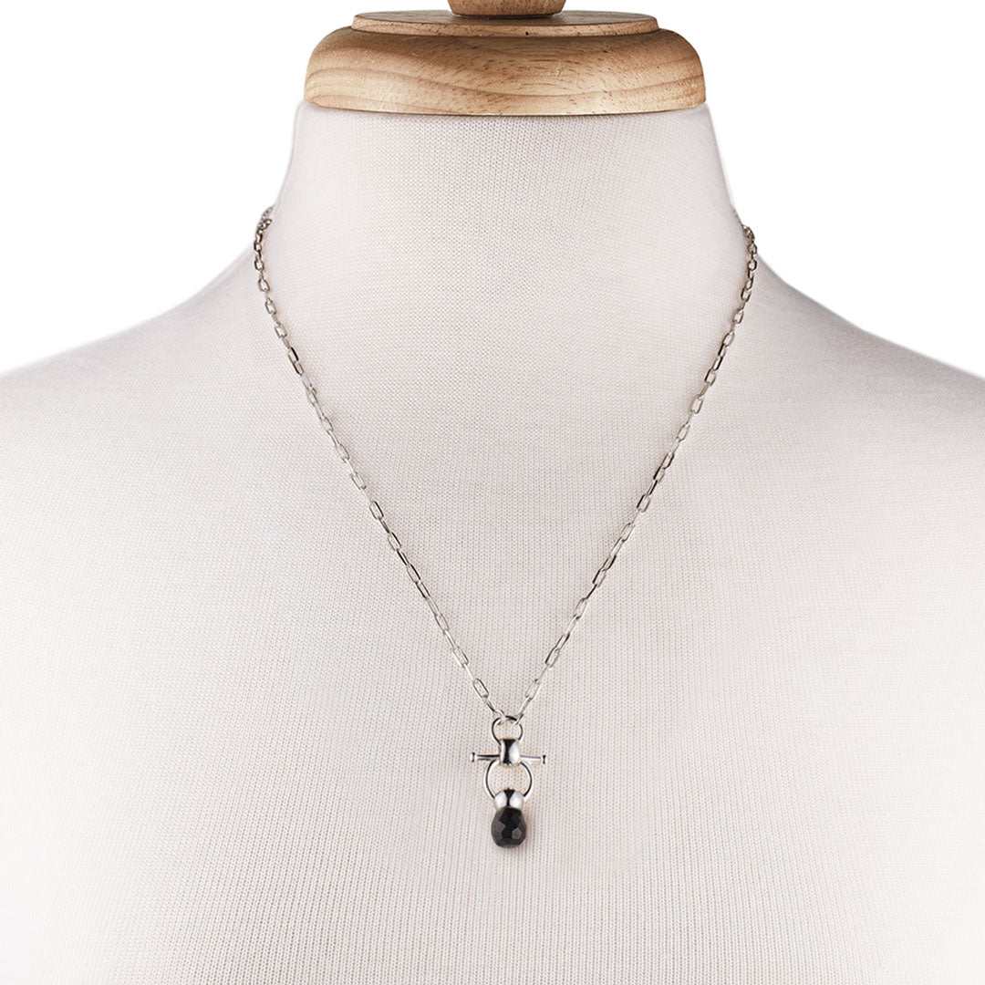 Briolette - Black Onyx Equestrian Horse Bit Necklace in Silver