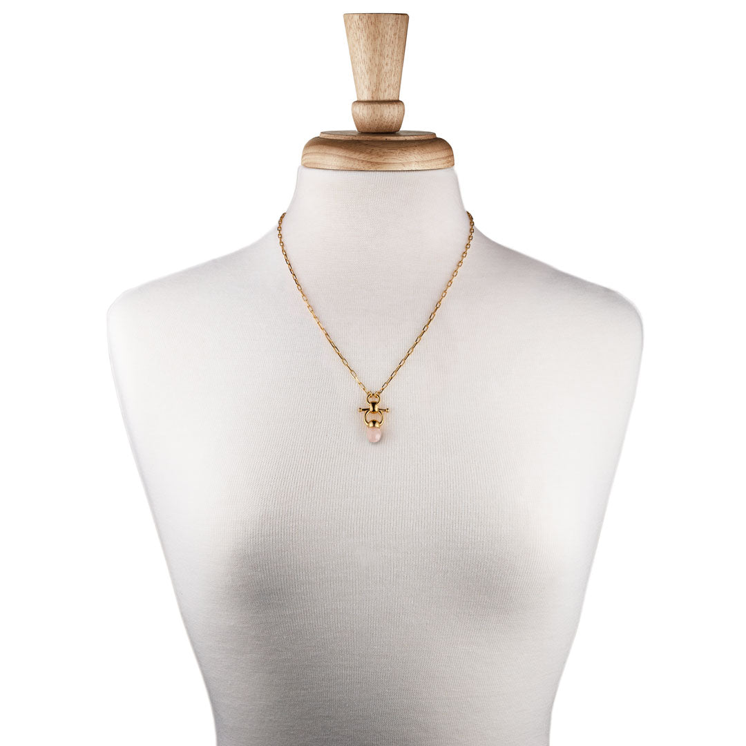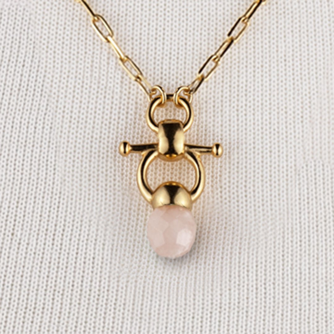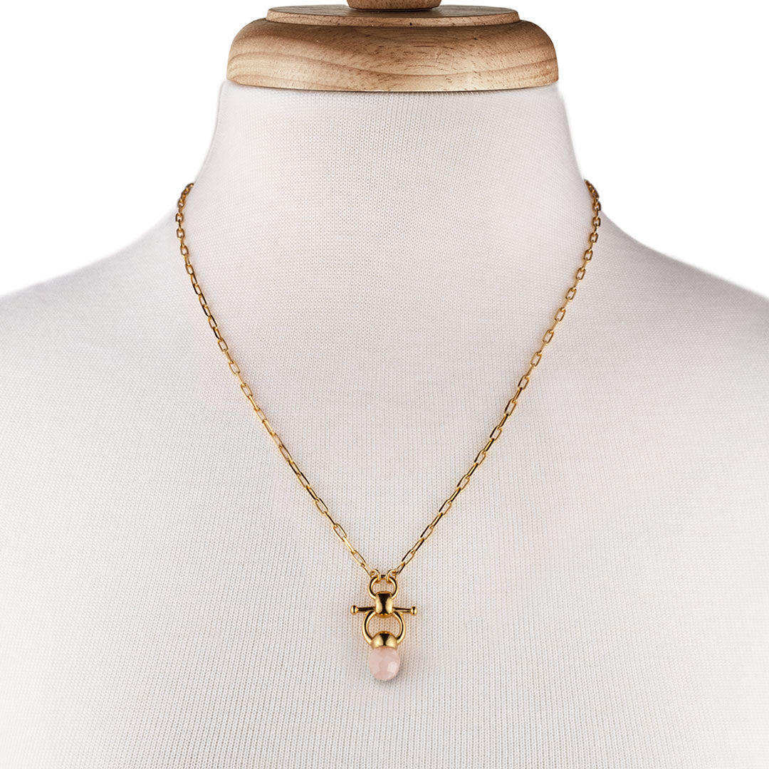 Briolette - Rose Quartz Equestrian Horse Bit Necklace in Gold