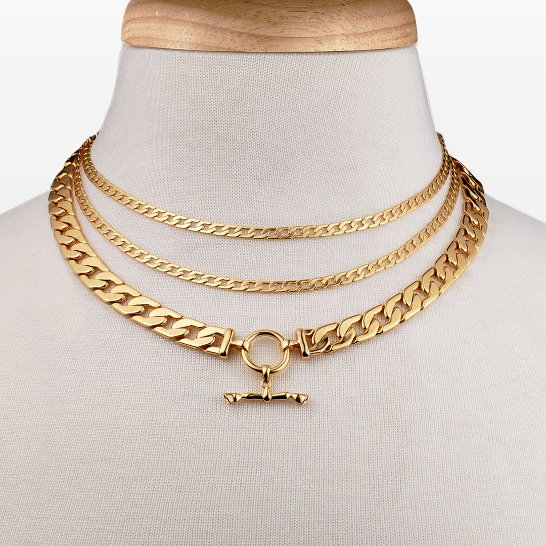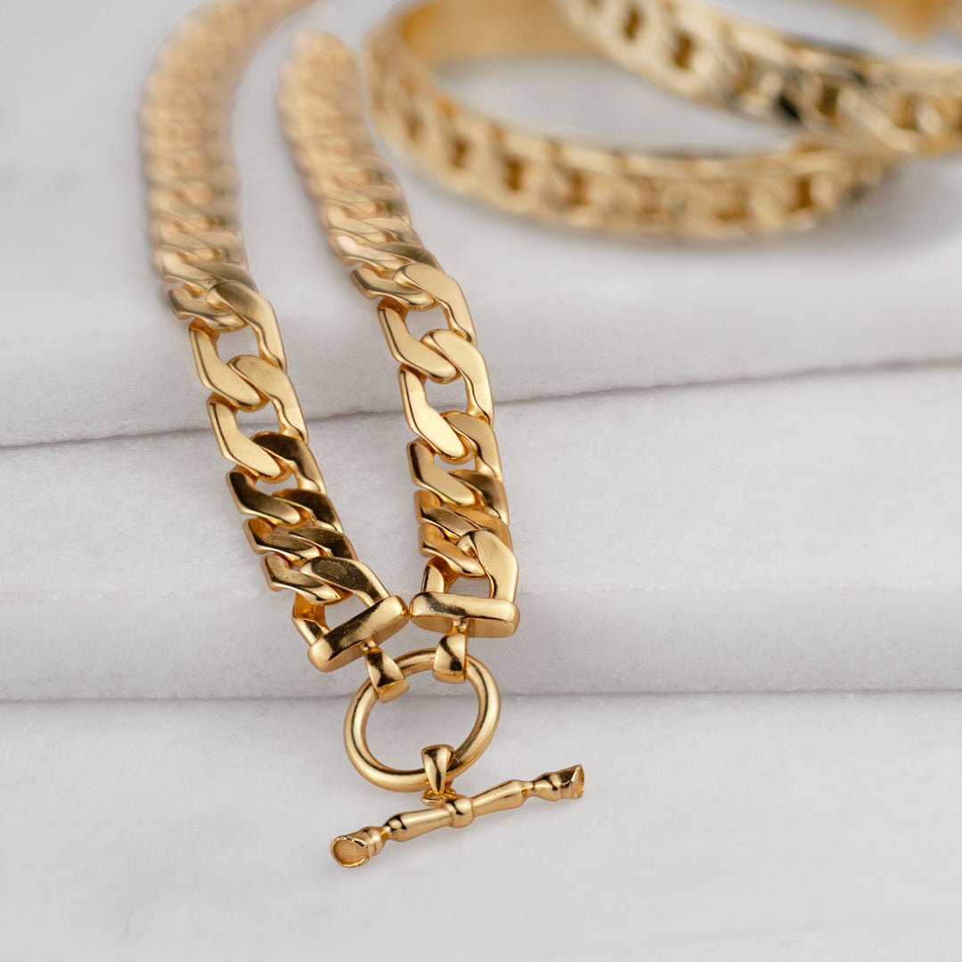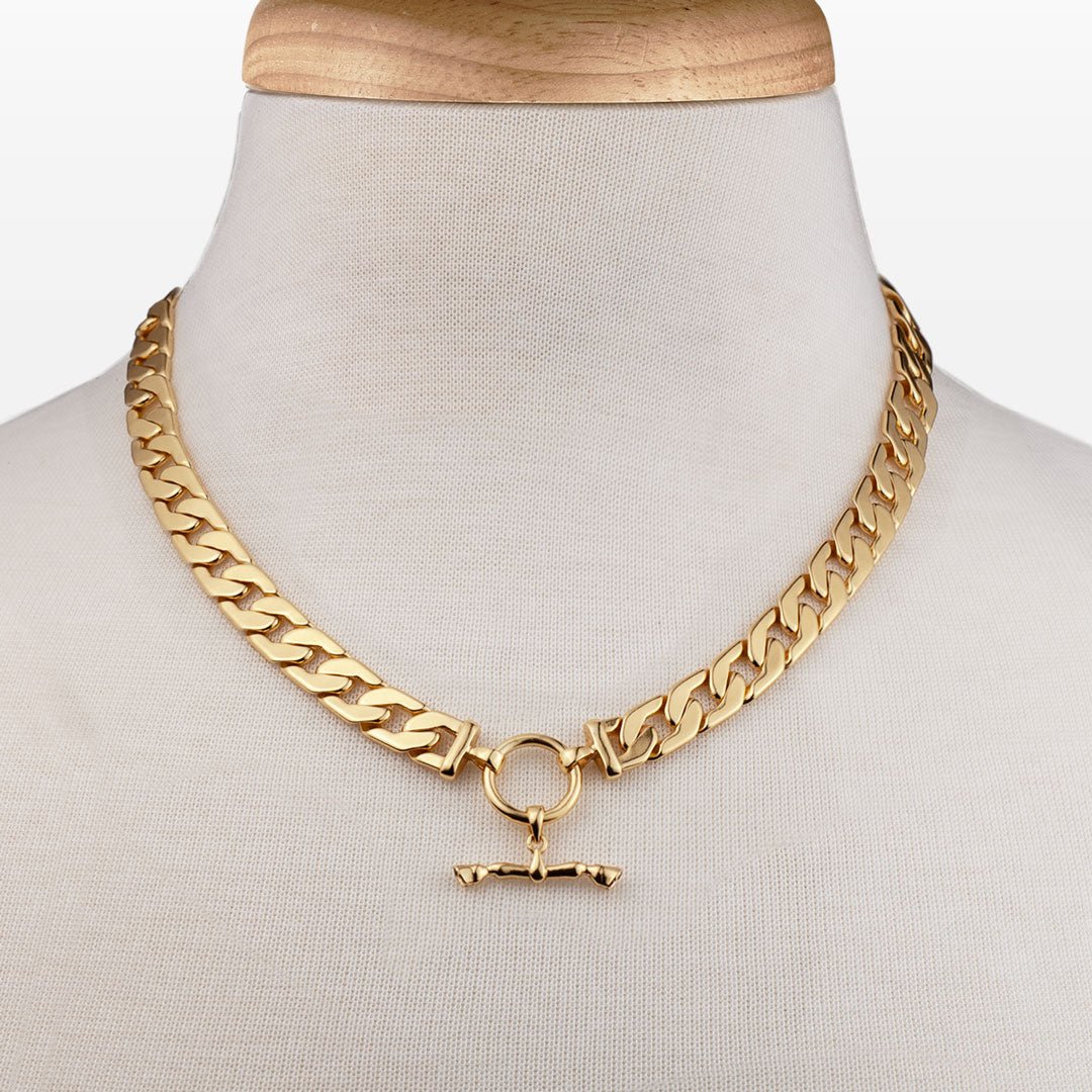 Cadence - Equestrian Curb Chain T-Bar Necklace in Gold