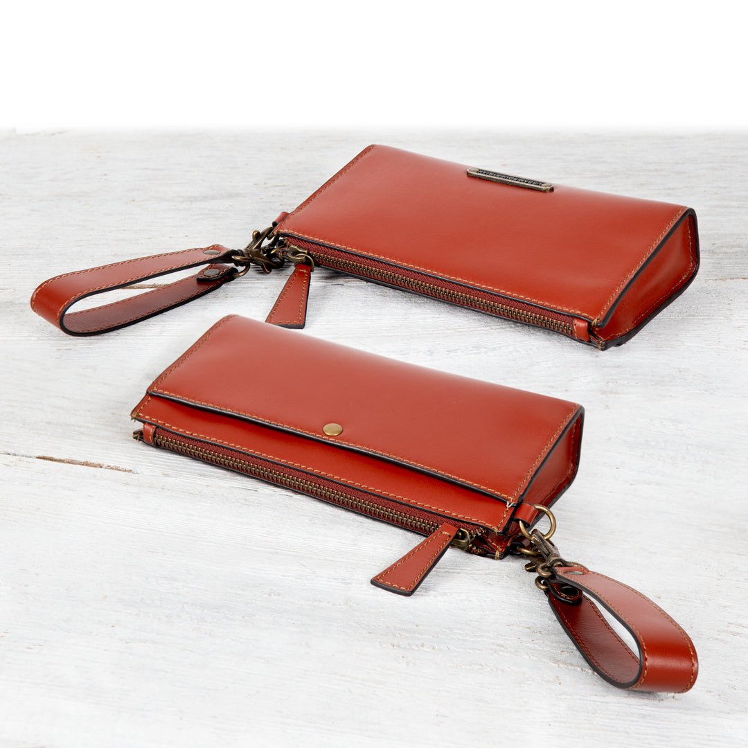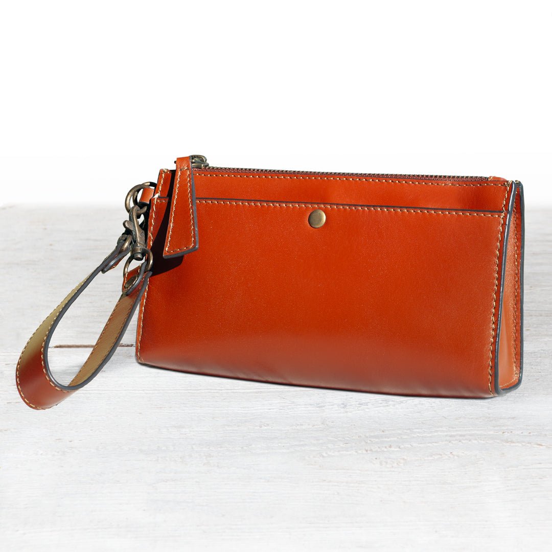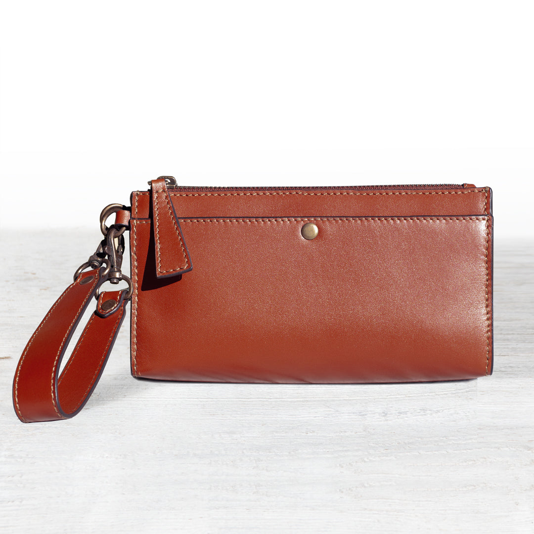 Caravel Wristlet Clutch - Luxury Leather Handbag in Cognac