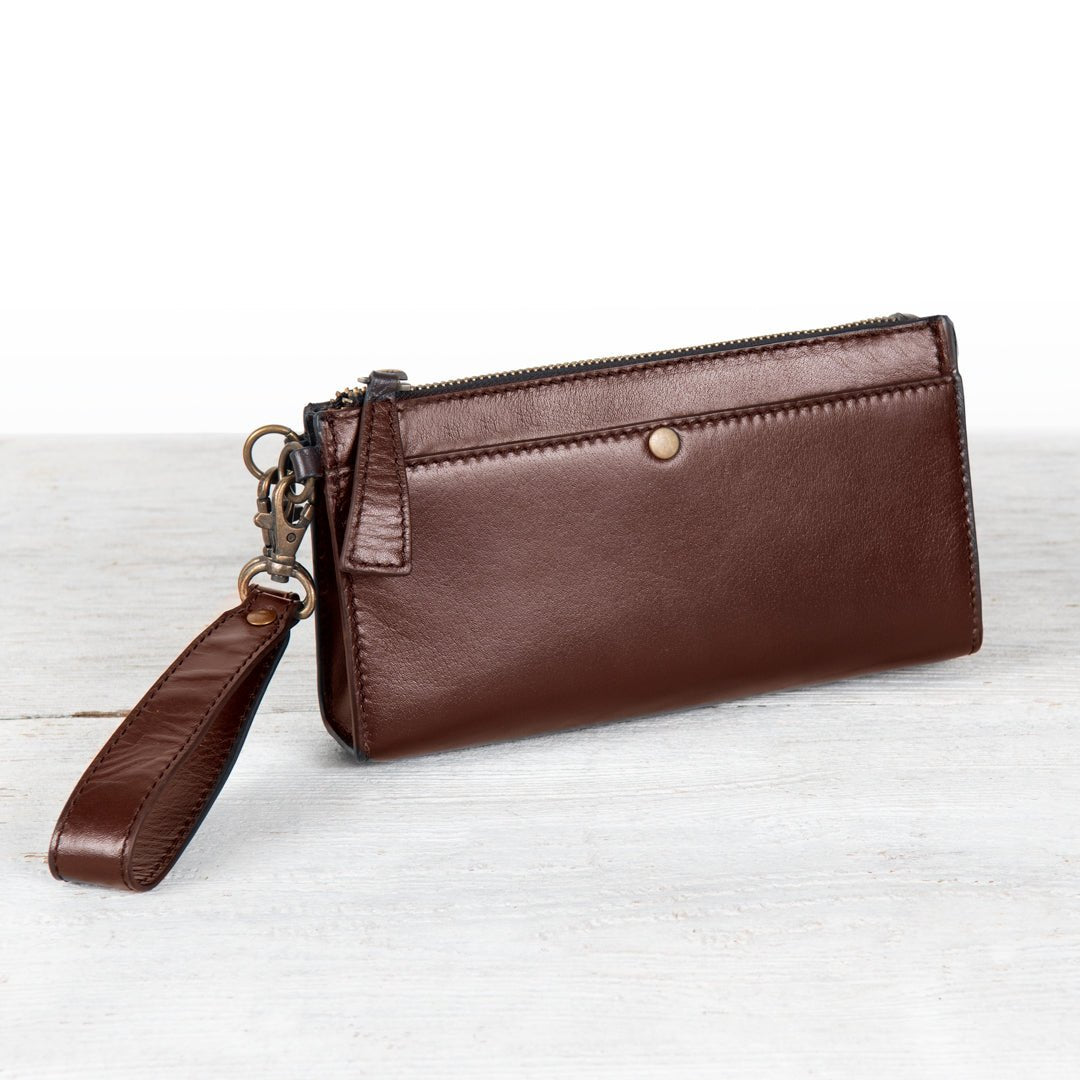 Caravel Wristlet Clutch - Luxury Leather Handbag in Deep Brown