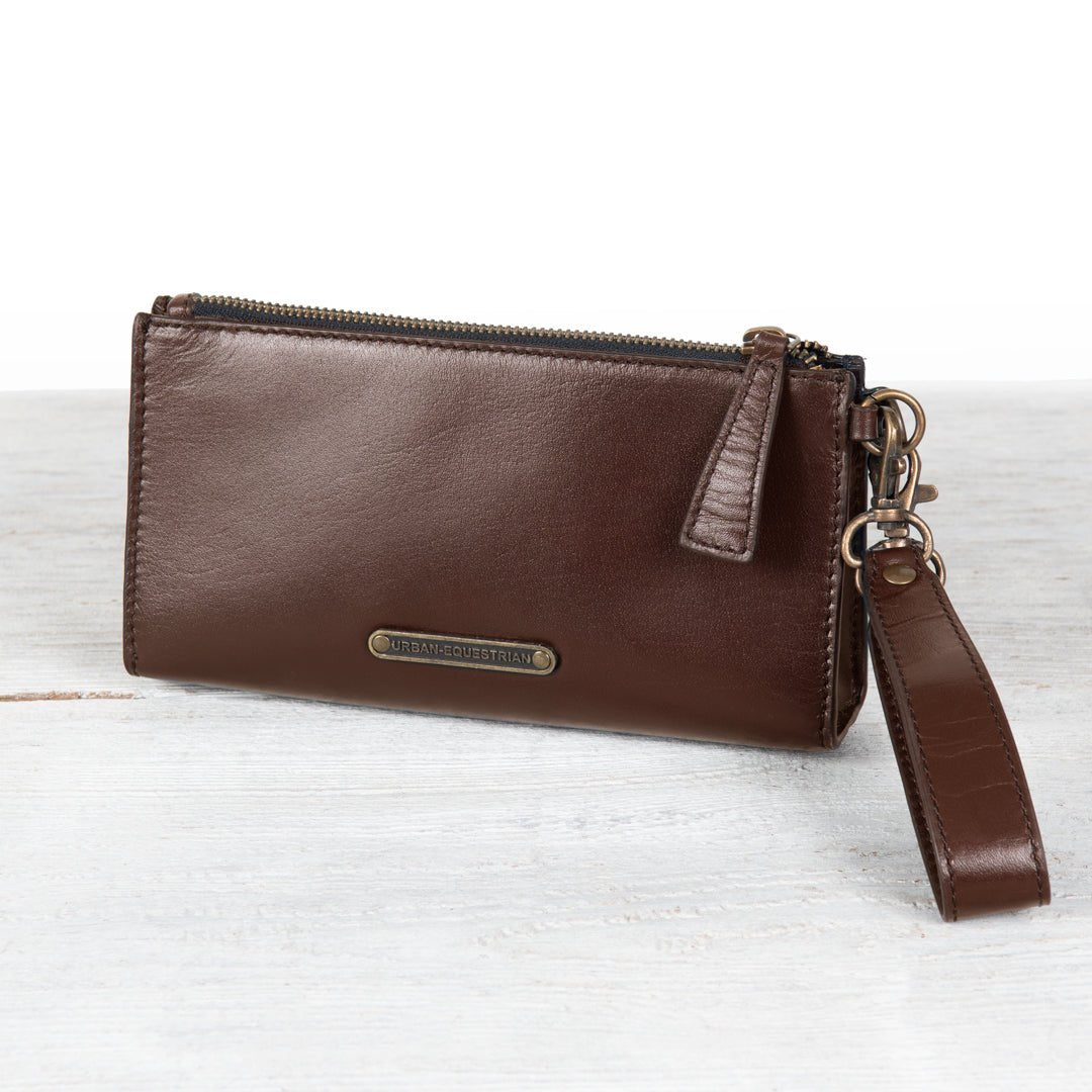From Stable to Soirée, the Caravel Wristlet Clutch in Deep Brown captures the warmth and refinement of rich Italian leather craftsmanship. Its equestrian-inspired silhouette and detachable wrist strap make it the perfect companion from barn brunches to evening events. Detailed with polished hardware and precision stitching, this timeless piece embodies URBAN-EQUESTRIAN’s signature fusion of heritage style and modern luxury — the ultimate horse lover gift in understated elegance.