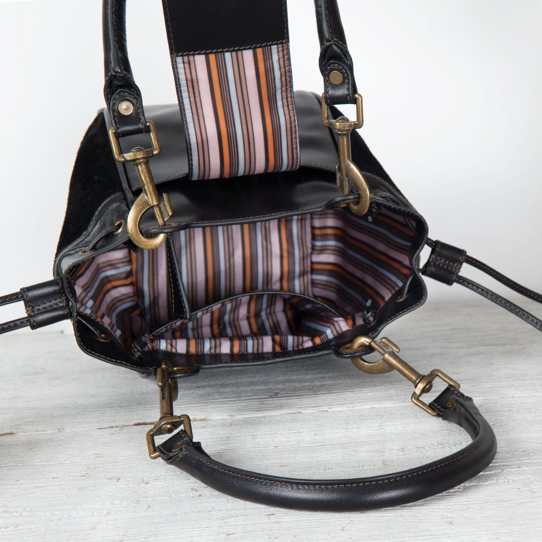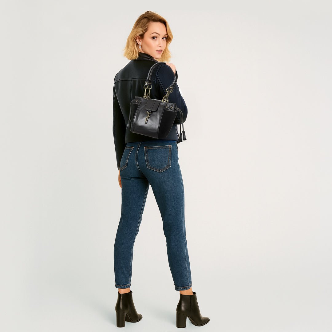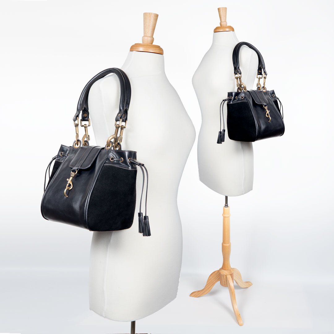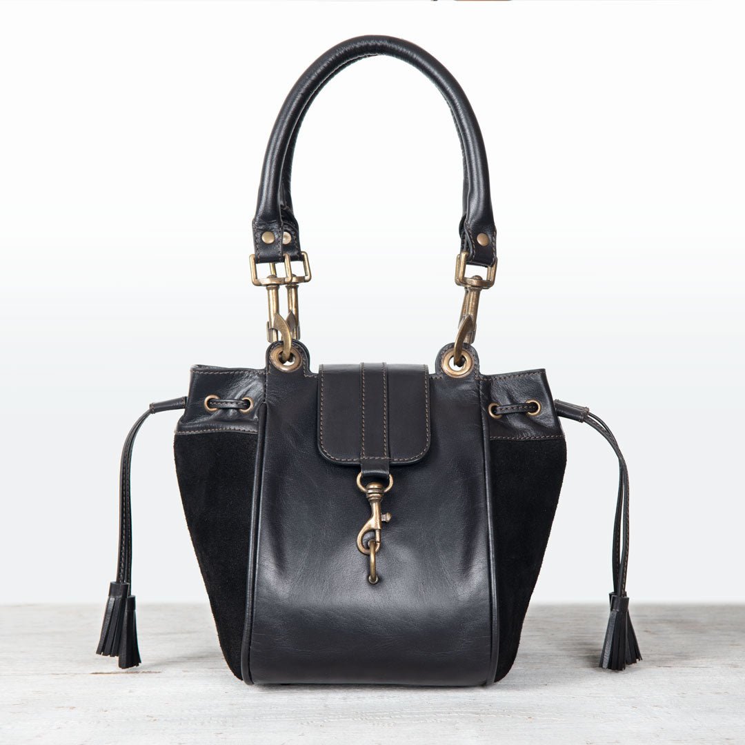 From Reins to Red Carpet, the Cassidy bucket bag exudes modern equestrian elegance in black Italian leather and suede. Accented with polished brass hardware, its tonal textures and sculpted form create a look that’s both sophisticated and bold. Designed for effortless transitions from stable to city, this timeless equestrian handbag is the perfect horse lover gift—a statement of sleek luxury and craftsmanship by URBAN-EQUESTRIAN.