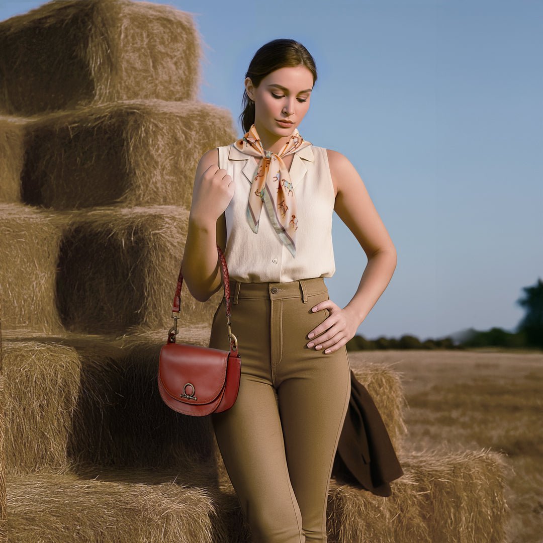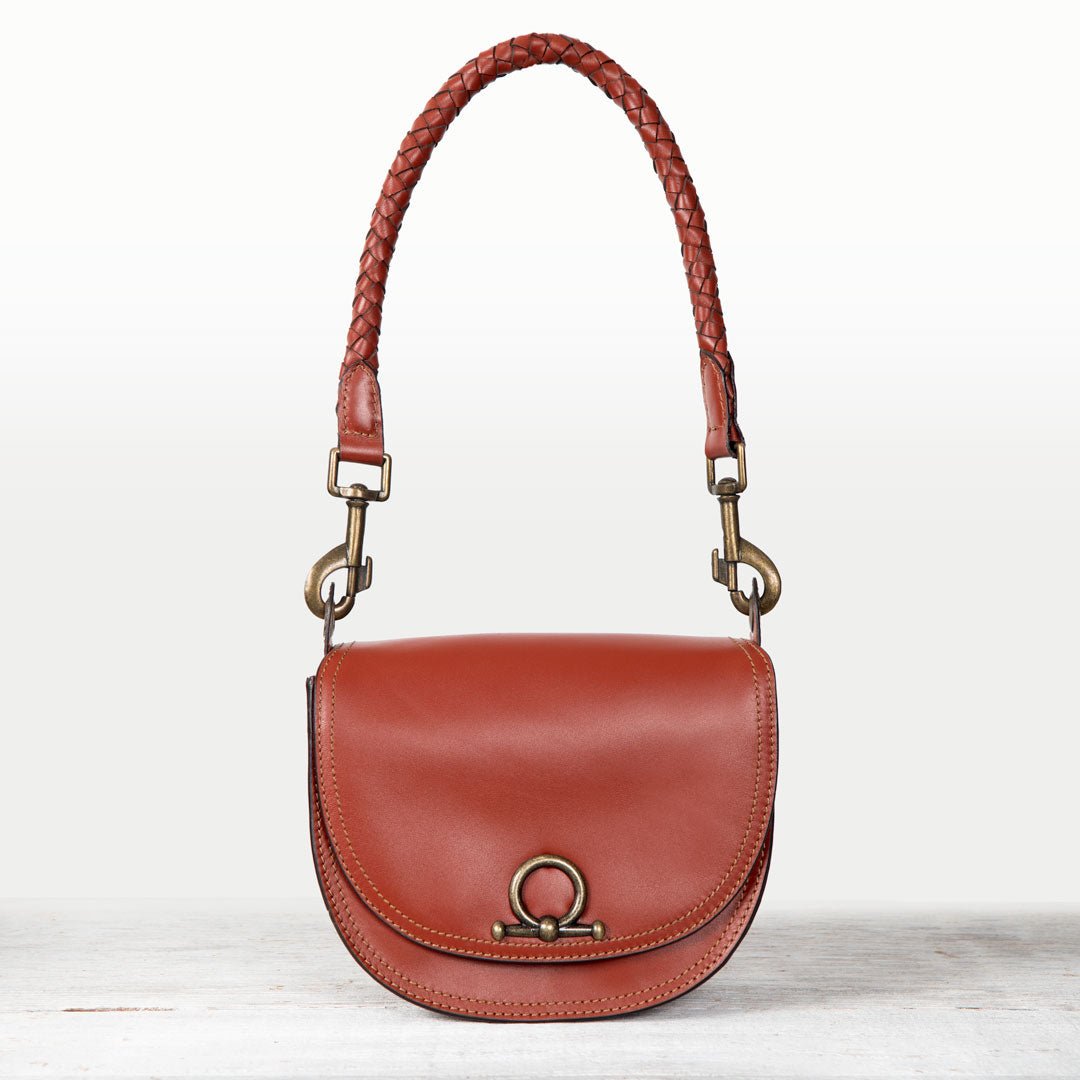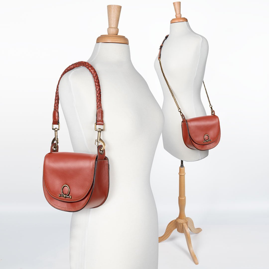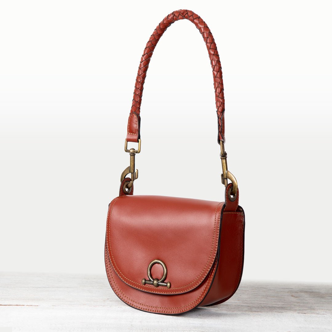 From saddle to soirée, the Cortina Horse Bit Lock Crossbody blends timeless equestrian heritage with modern polish. Crafted in rich cognac Italian leather, this refined silhouette features a signature horse bit lock and warm brass hardware. Finished with a hand-woven designer top handle and a fashion curb chain & leather shoulder strap, it’s a luxury equestrian handbag and a standout horse lover gift. Designed by URBAN-EQUESTRIAN.