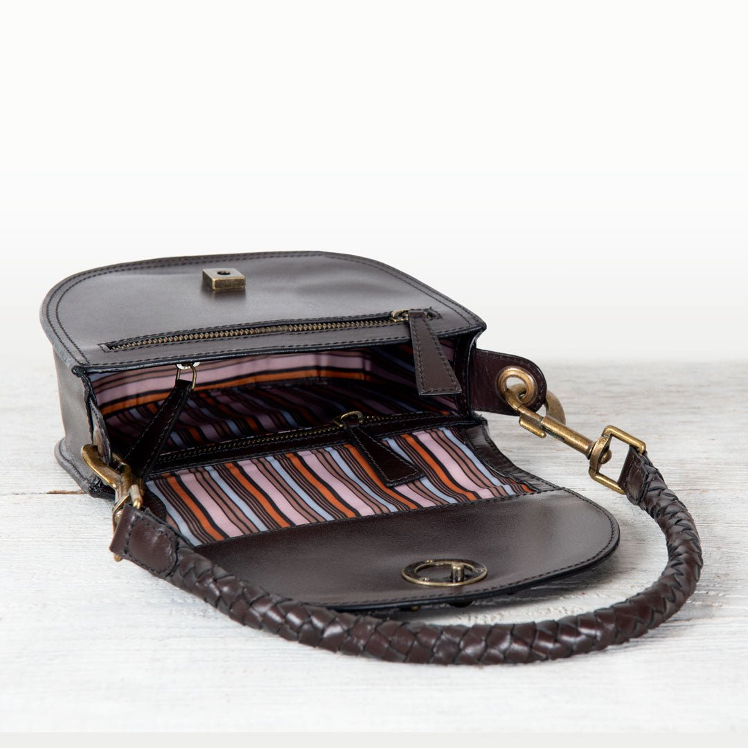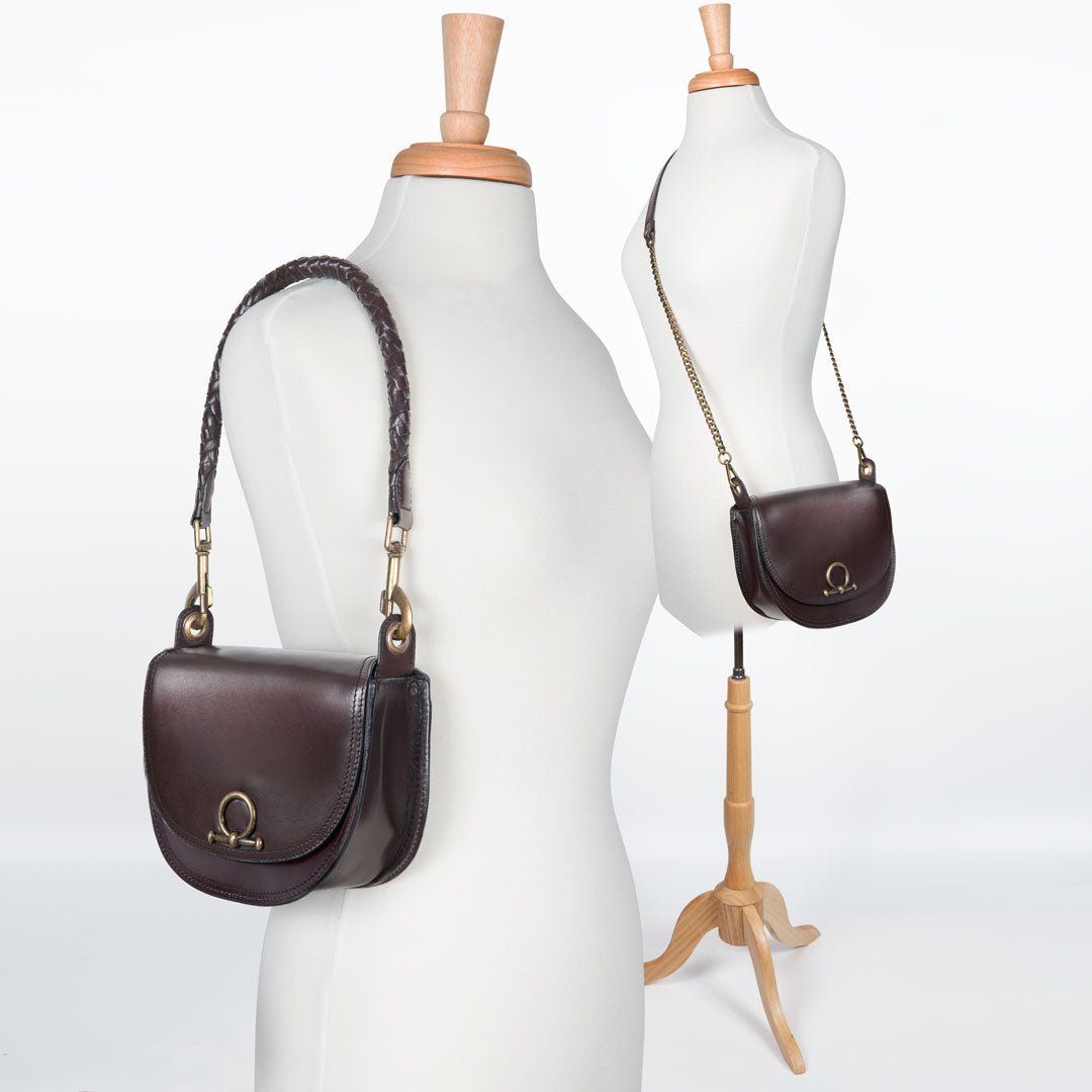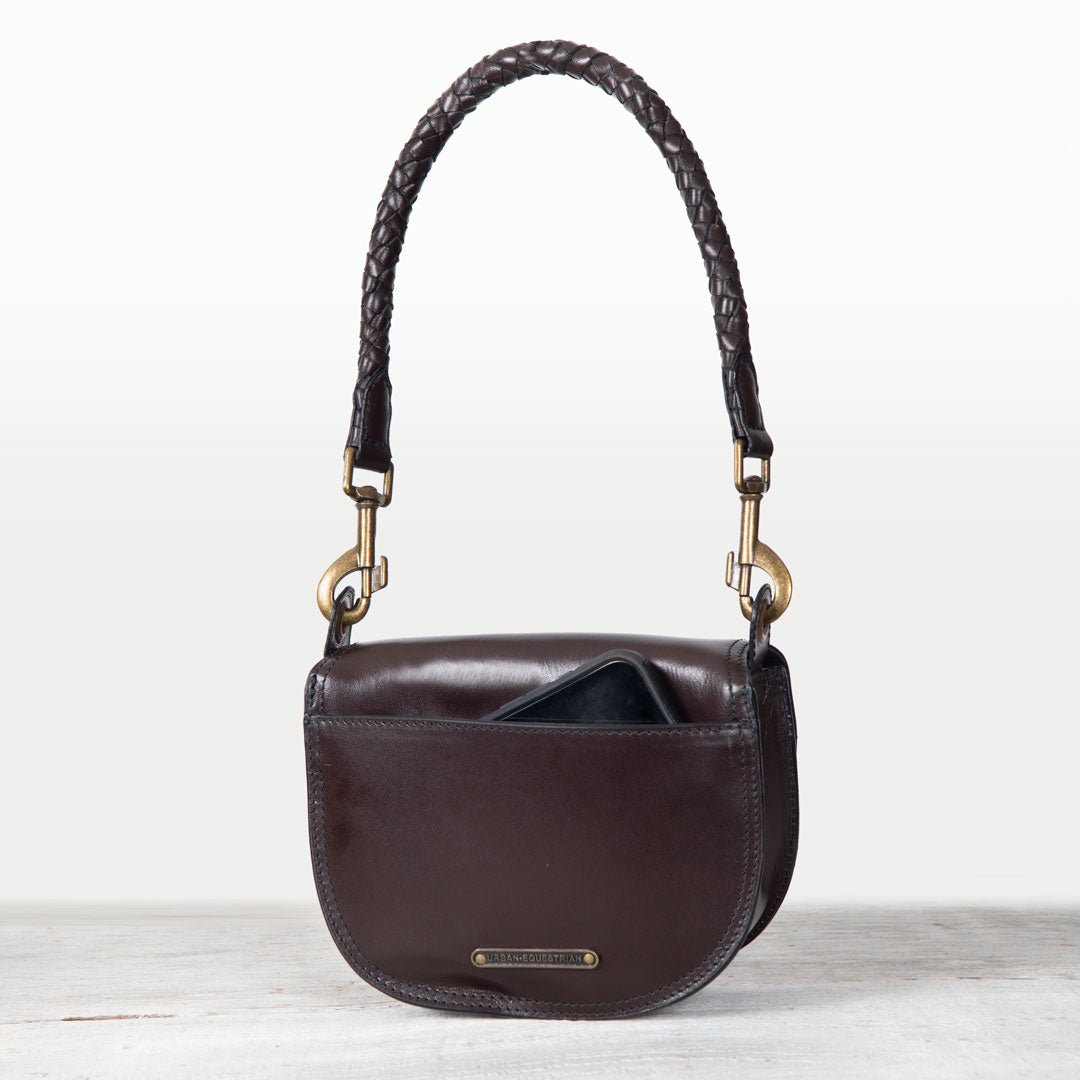 From saddle to soirée, the Cortina Horse Bit Lock Crossbody blends timeless equestrian heritage with modern sophistication. Crafted in deep brown Italian leather, this elevated silhouette showcases a signature horse bit lock paired with rich brass hardware. Finished with a hand-woven designer top handle and a fashion curb chain & leather shoulder strap, it’s a luxury equestrian handbag and an inspired horse lover gift. Designed by URBAN-EQUESTRIAN.