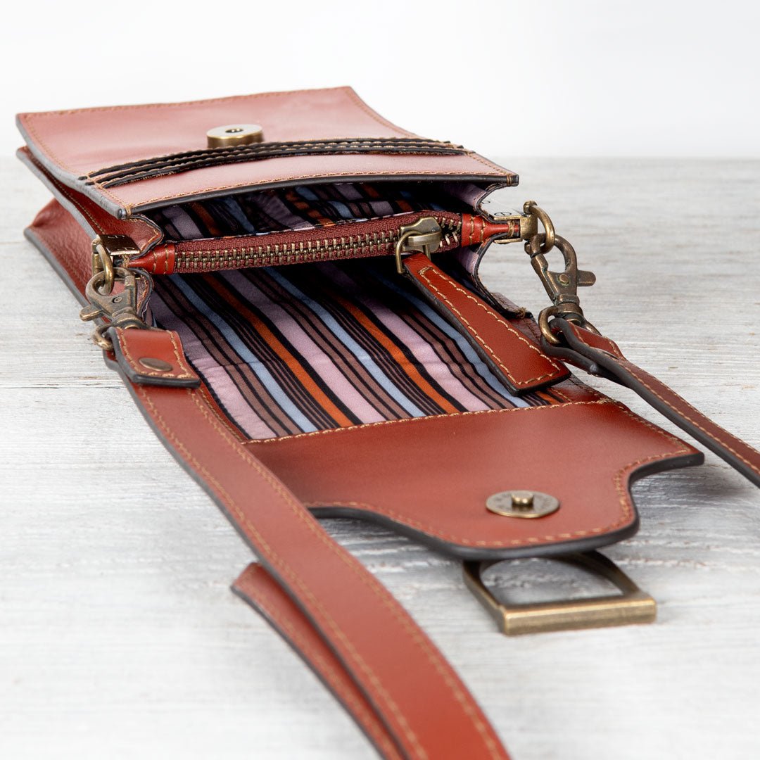 Devon Deluxe Phone Bag - Luxury Leather Handbag in Cognac