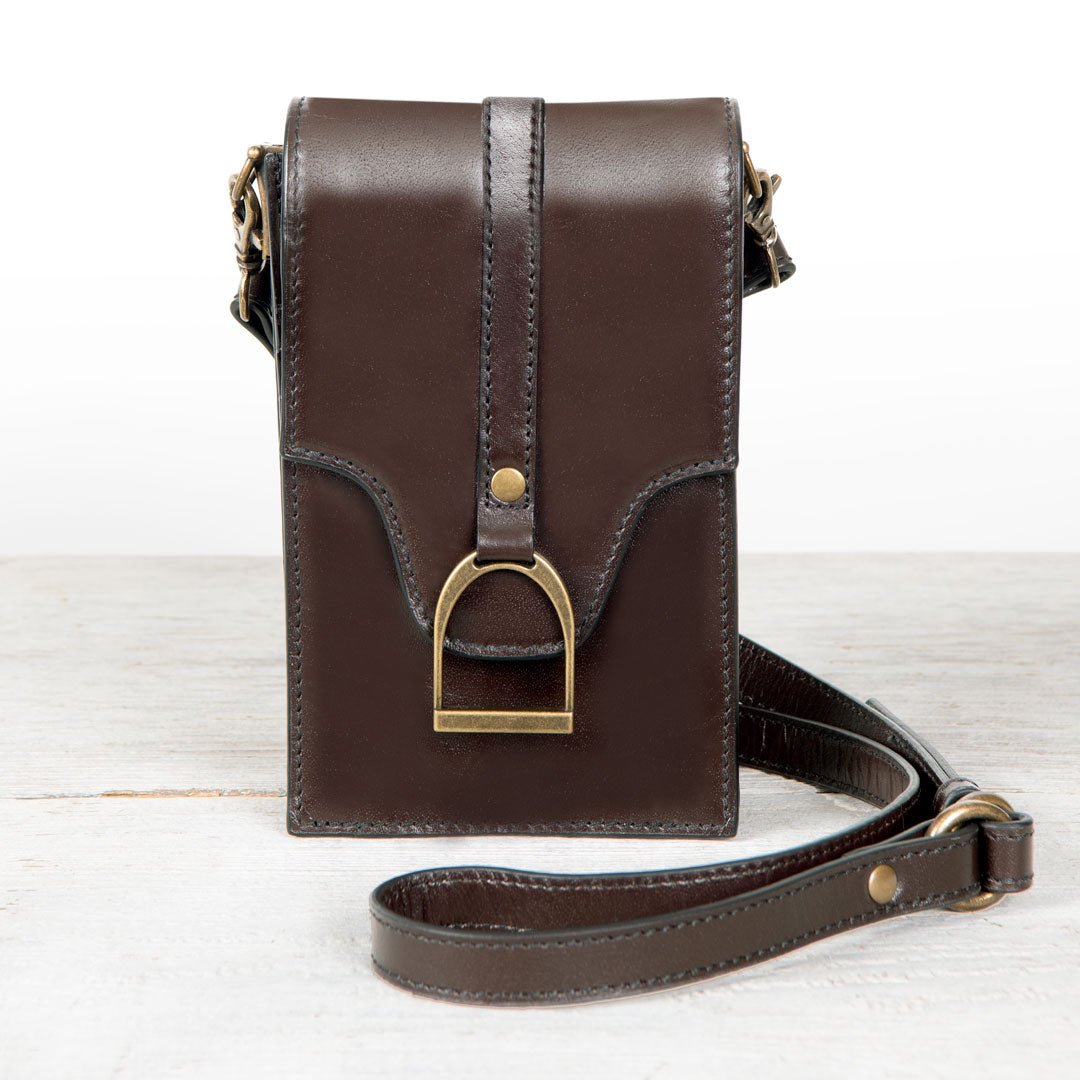 Devon Deluxe Phone Bag - Luxury Leather Handbag in Deep Brown