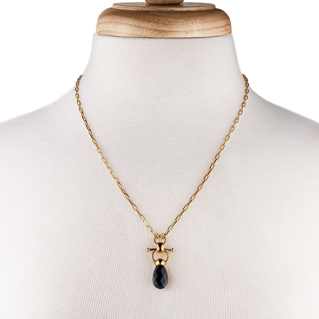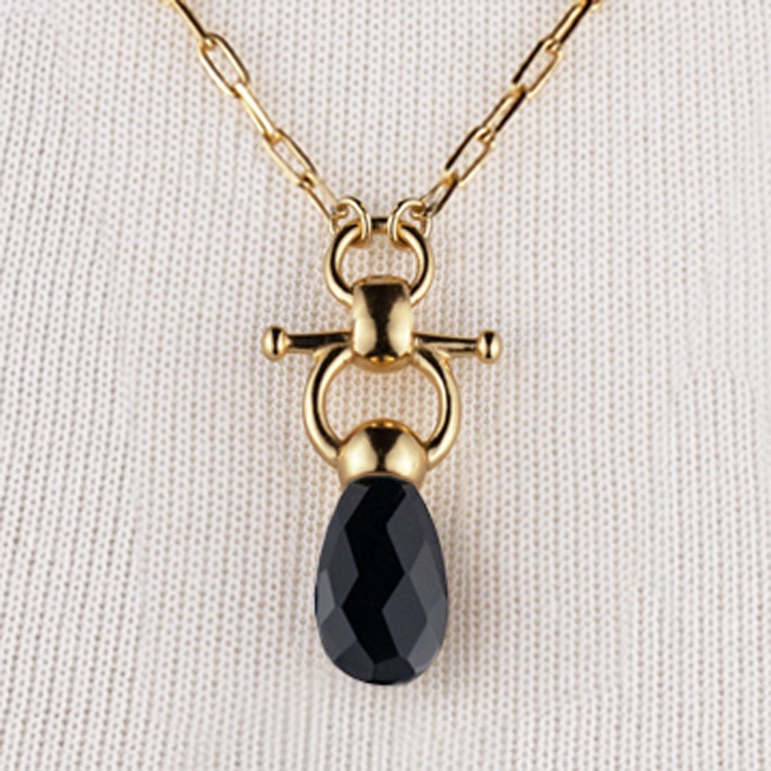 Droplette - Black Onyx Equestrian Horse Bit Necklace in Gold