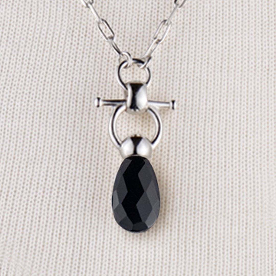 Droplette - Black Onyx Equestrian Horse Bit Necklace in Silver