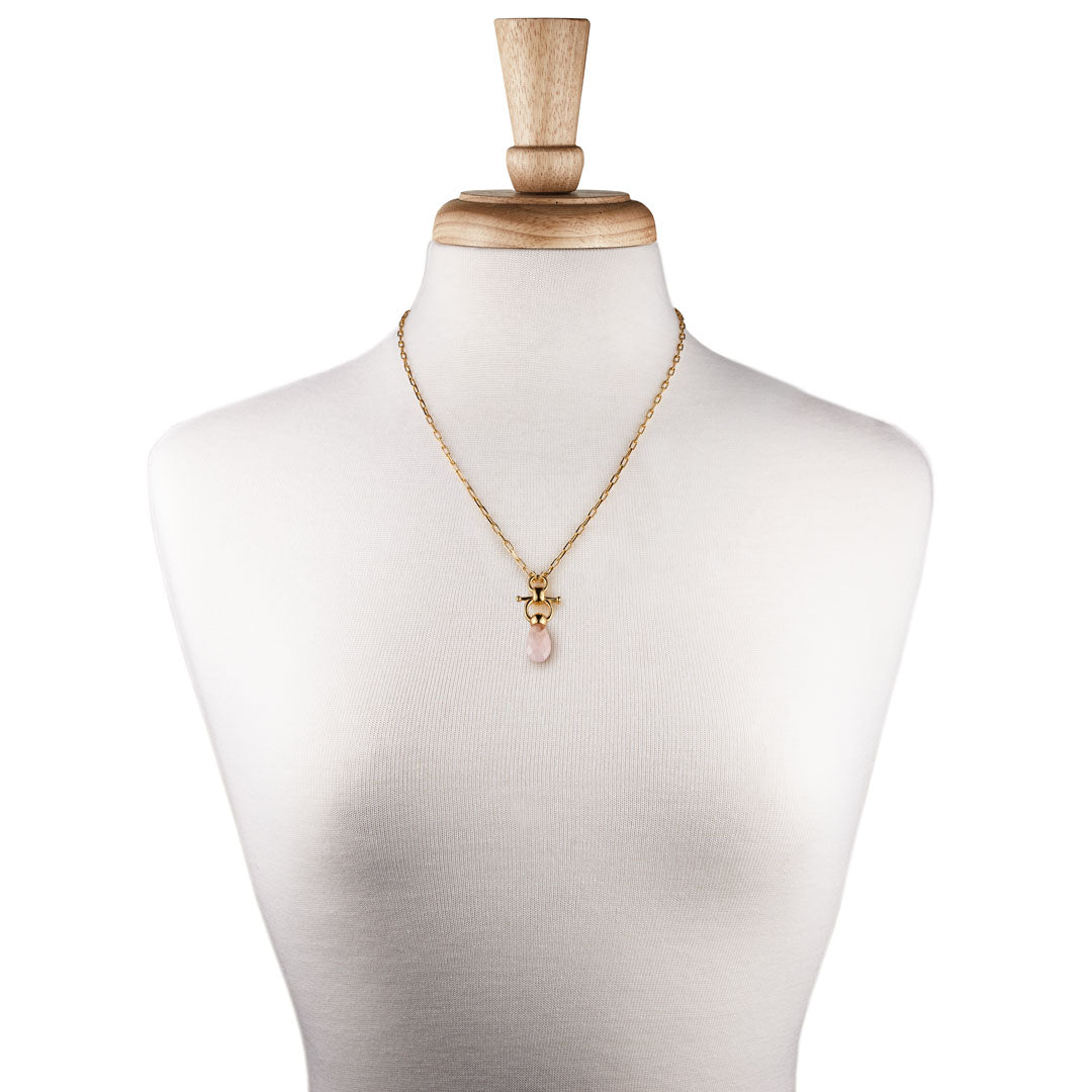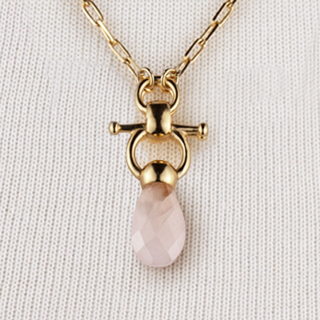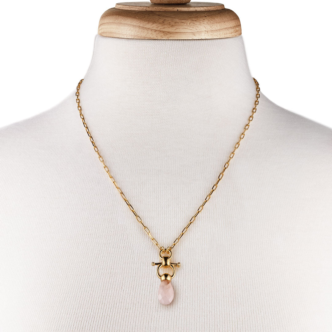 Droplette - Rose Quartz Equestrian Horse Bit Necklace in Gold