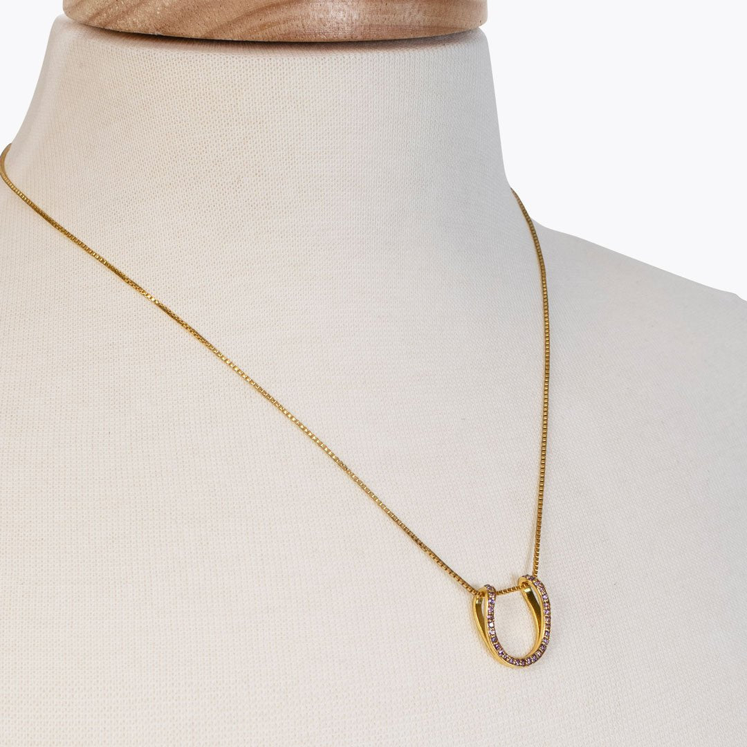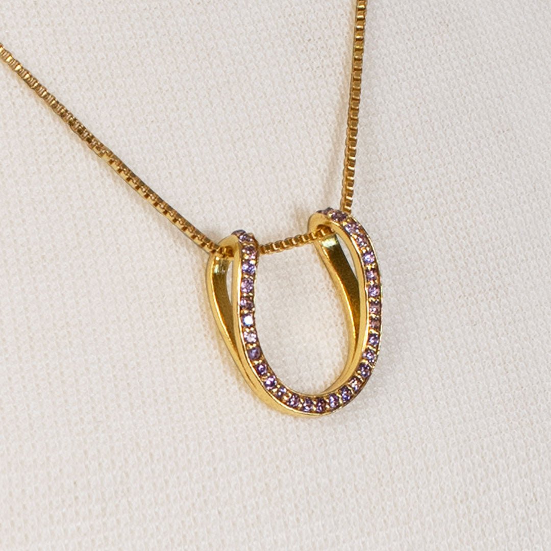 Levade -Violet Moissanite Horseshoe Equestrian Necklace in Gold