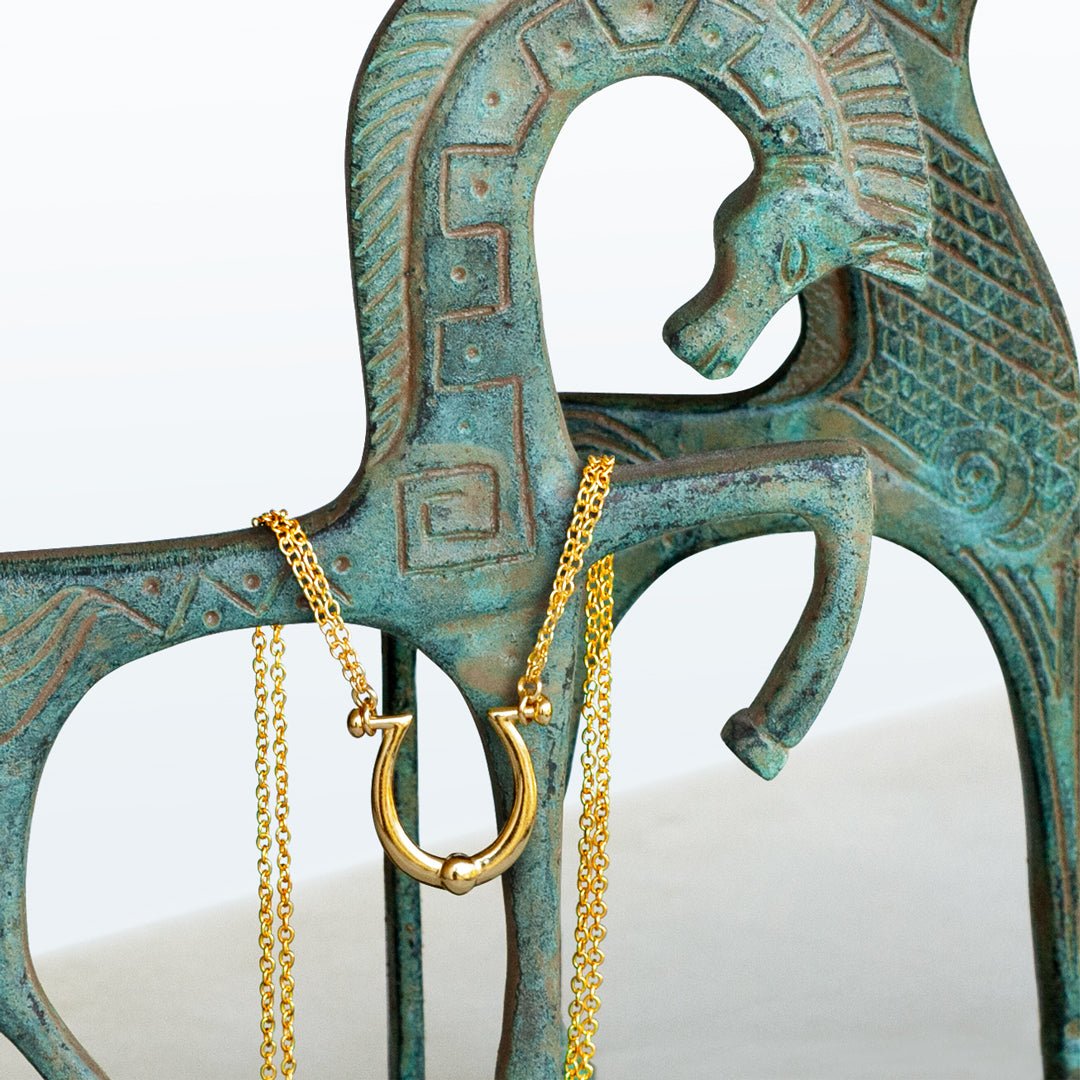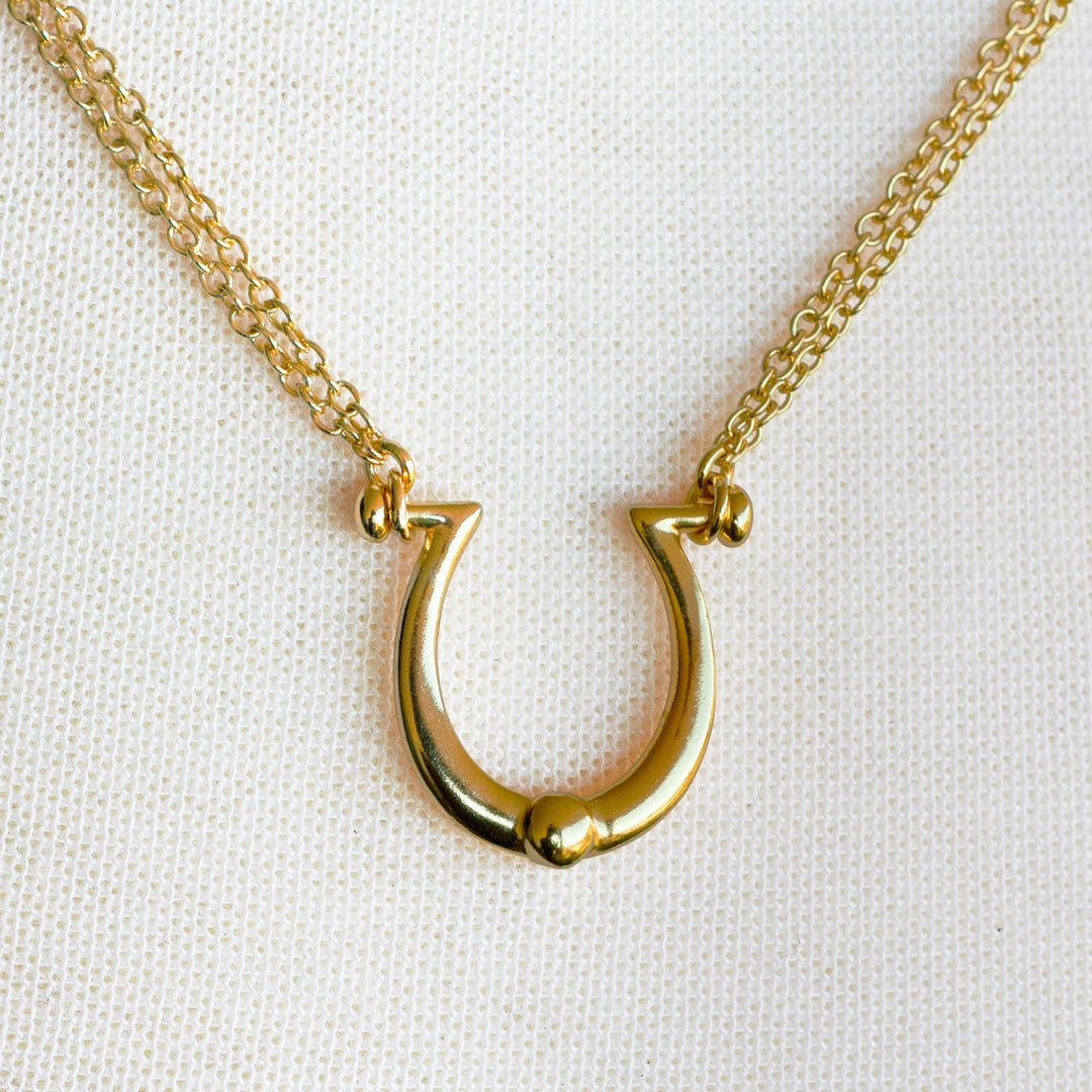 Hayloft to Happy Hour, Omega Horseshoe Necklace in Gold Vermeil by URBAN-EQUESTRIAN blends classic equestrian symbolism with polished, modern style. Crafted in luminous gold vermeil, the refined horseshoe motif represents luck, protection, and strength. Designed to layer or shine solo, this timeless piece is a luxury equestrian jewelry essential and an elevated horse lover gift, perfect for horse girls and fashionista alike!