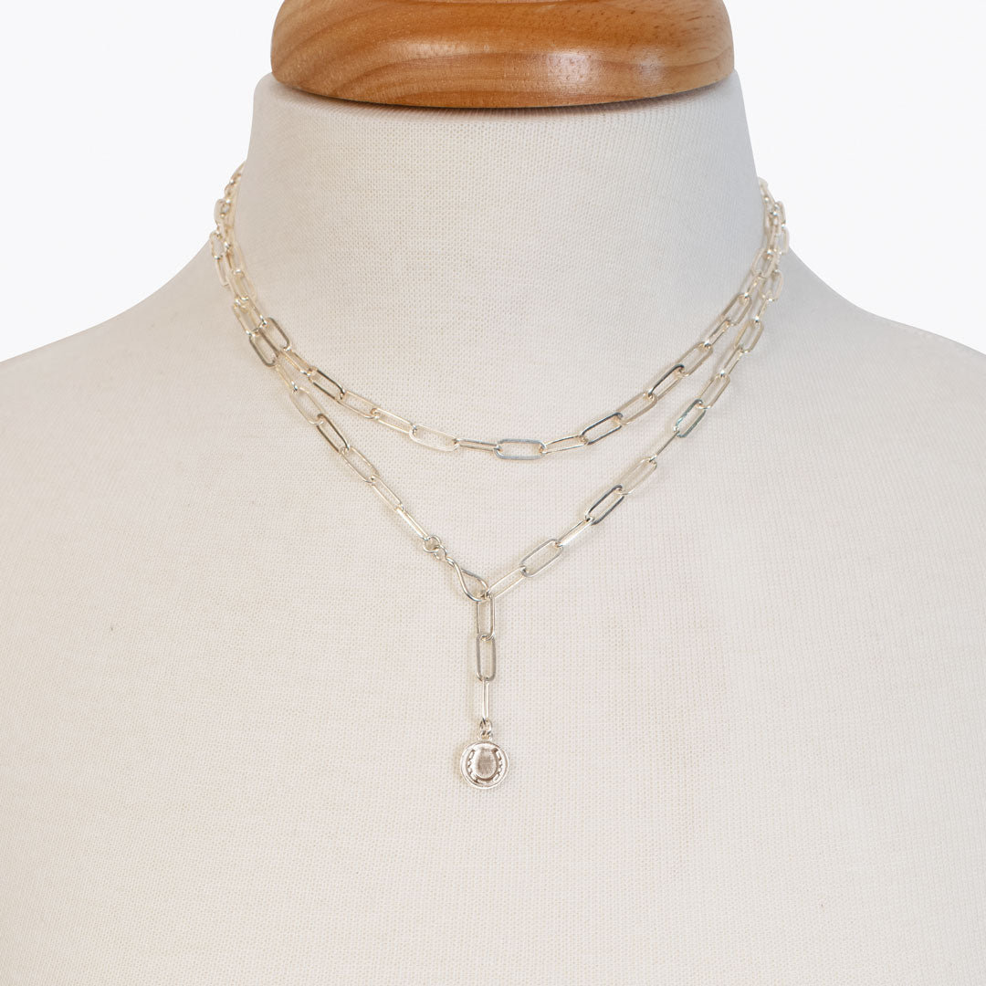 Roxy - Paperclip Chain w/ Horseshoe Coin - Large Link in Silver