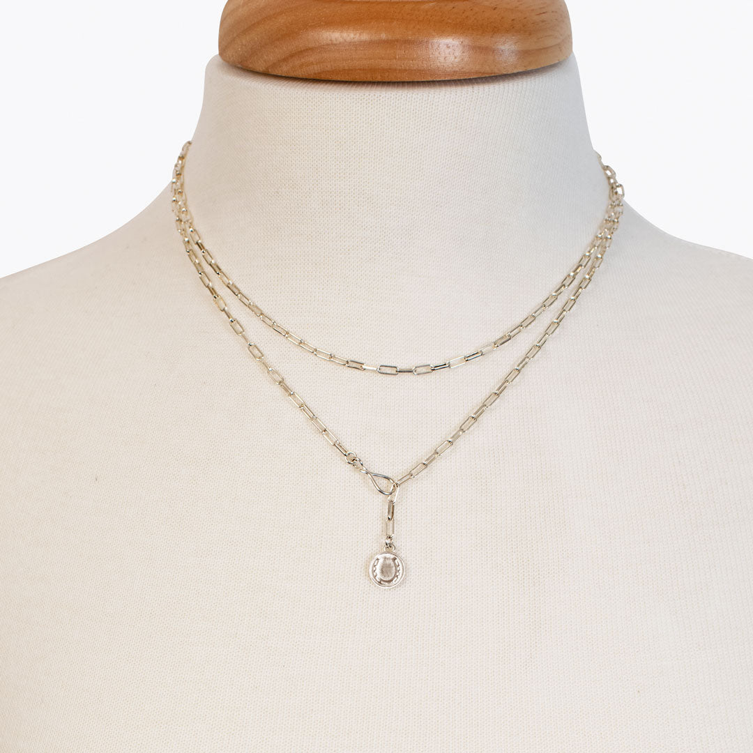 Roxy - Paperclip Chain w/ Horseshoe Coin - Petite Link in Silver