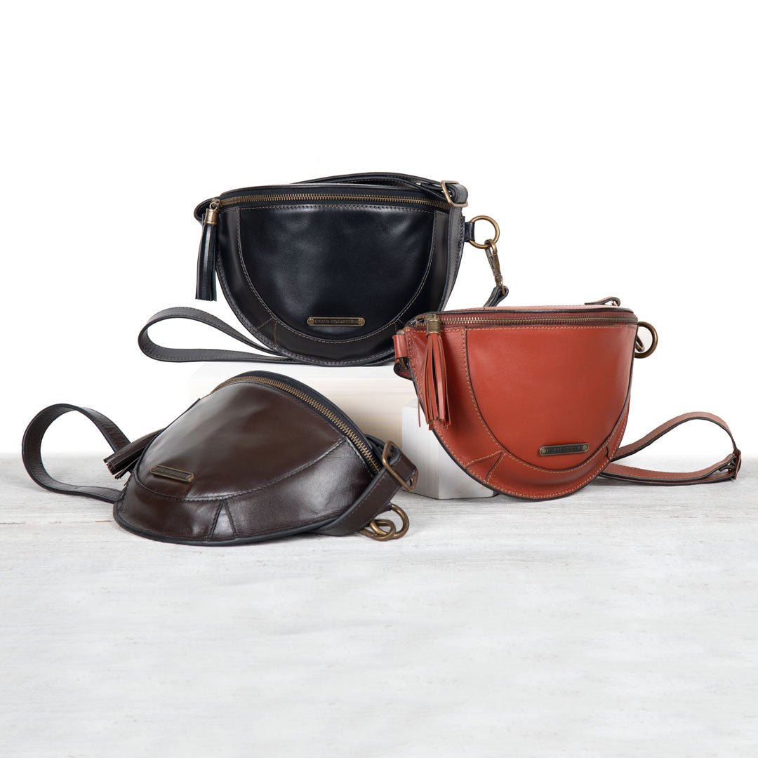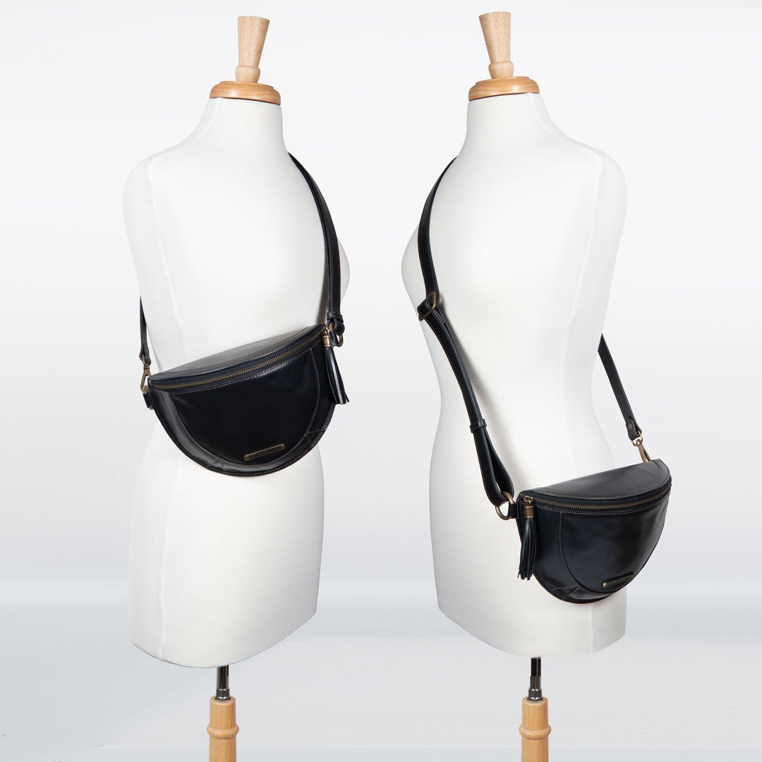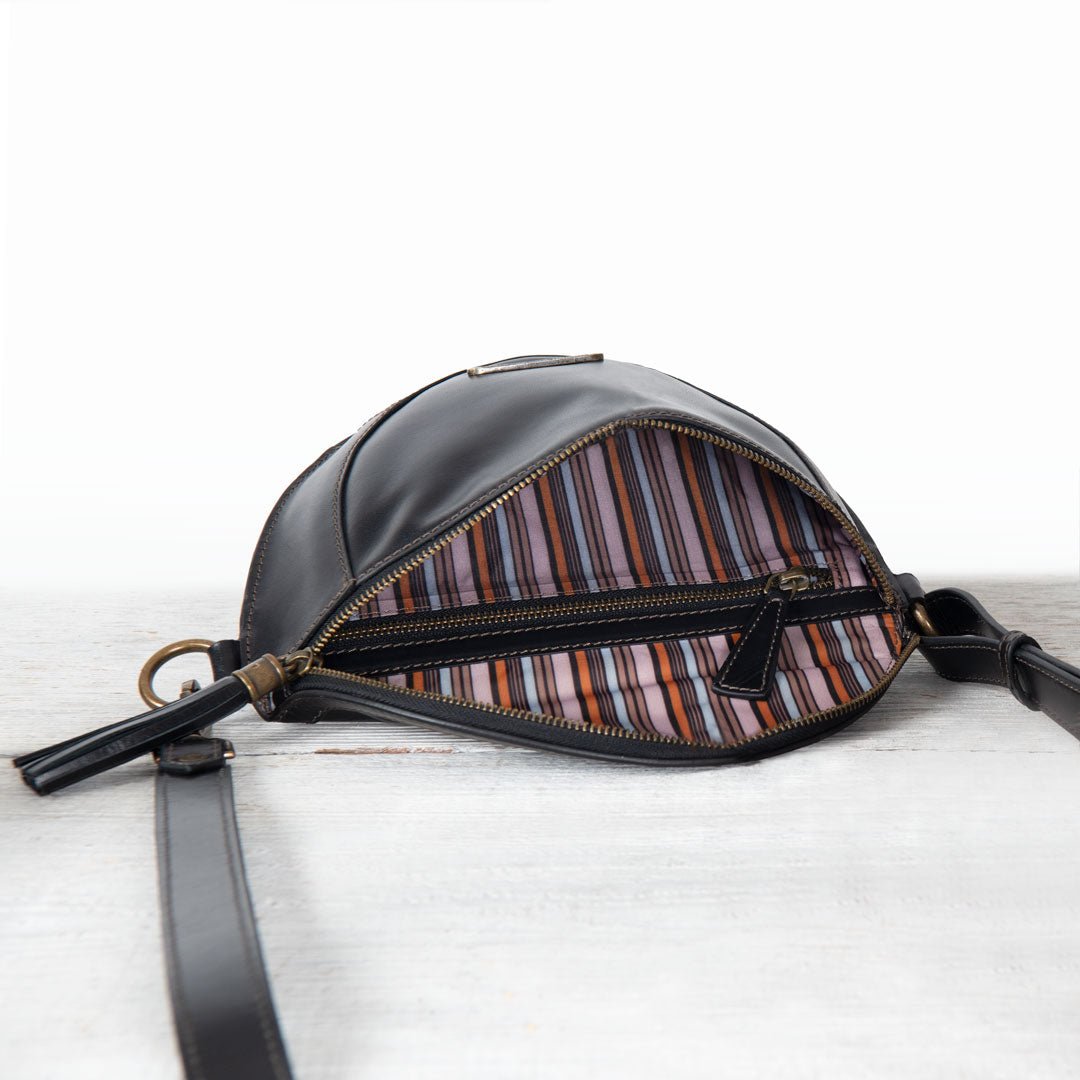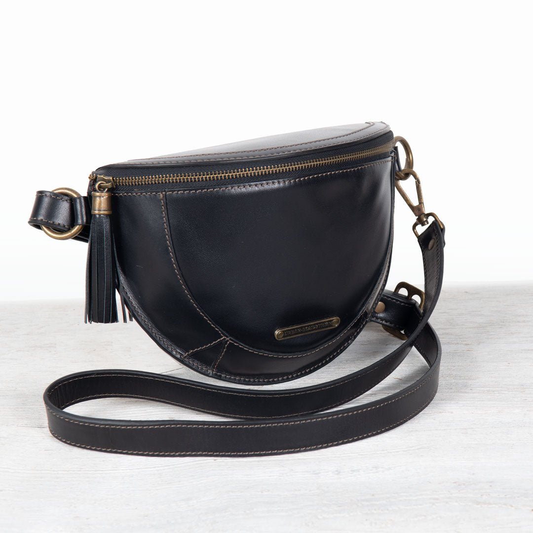 From Stable to Street, the Sonoma Sling Bag in Black Italian Leather by Urban-Equestrian brings effortless EQ sophistication for horse girls and fashionistas alike. Crafted in supple Italian leather with gleaming brass hardware, this sleek, body-hugging sling is a standout horse lover gift. With an adjustable strap, secure zip, and smart interior pockets, it’s the perfect equestrian-inspired everyday essential.