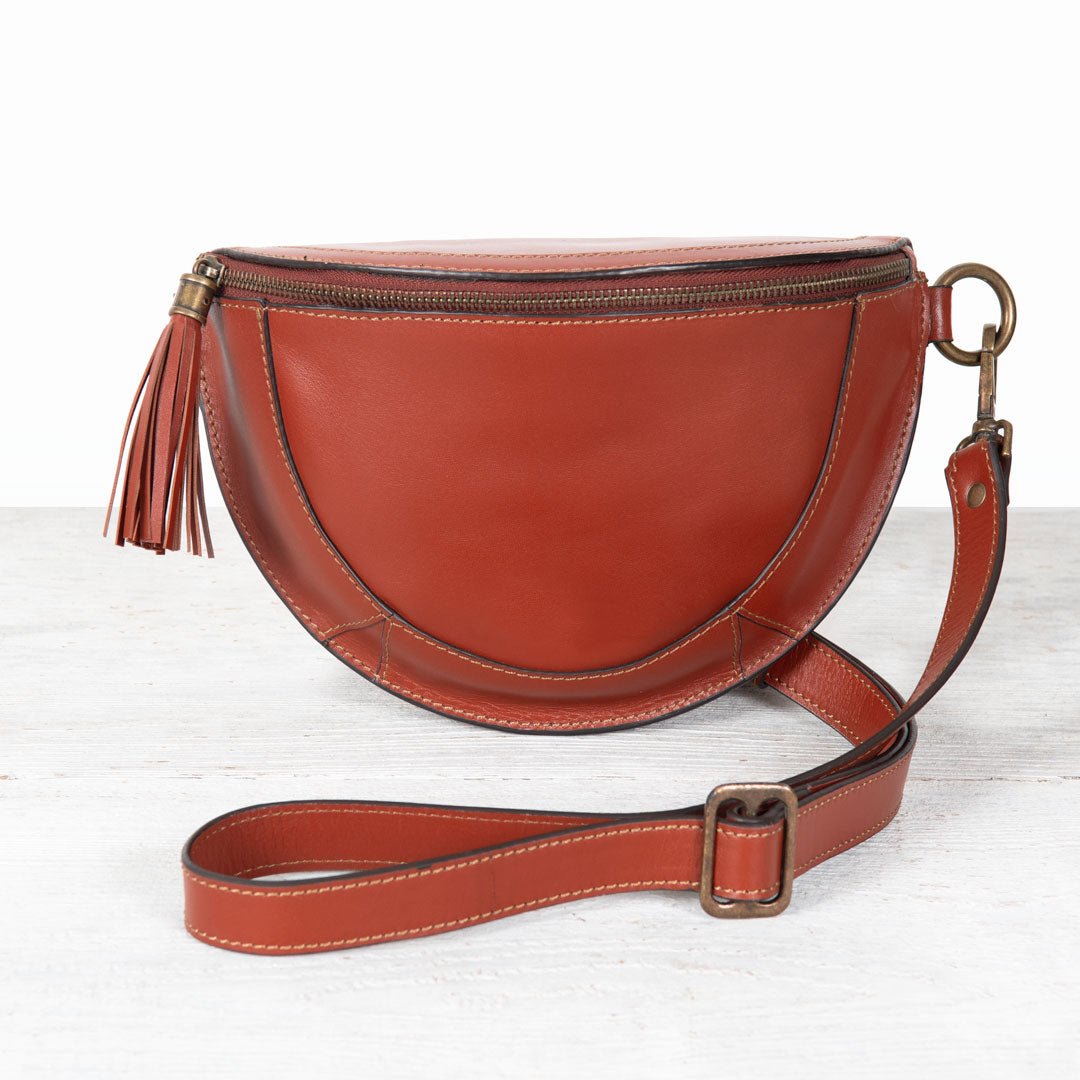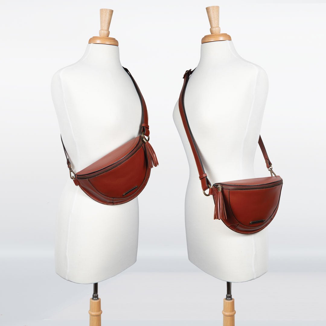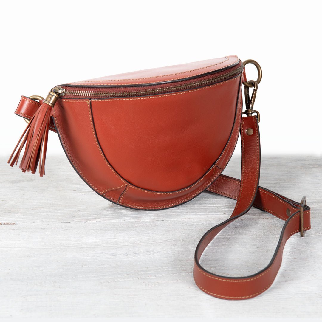 From Hayloft to Happy Hour, the Sonoma Sling Bag in Cognac Italian Leather by Urban-Equestrian brings warm, refined style to horse girls and fashionistas alike. Crafted in supple Italian leather with classic brass hardware, this sculpted, body-skimming sling is a standout horse lover gift. An adjustable strap, smooth zip closure, and smart interior pockets make it the perfect equestrian-inspired everyday essential.