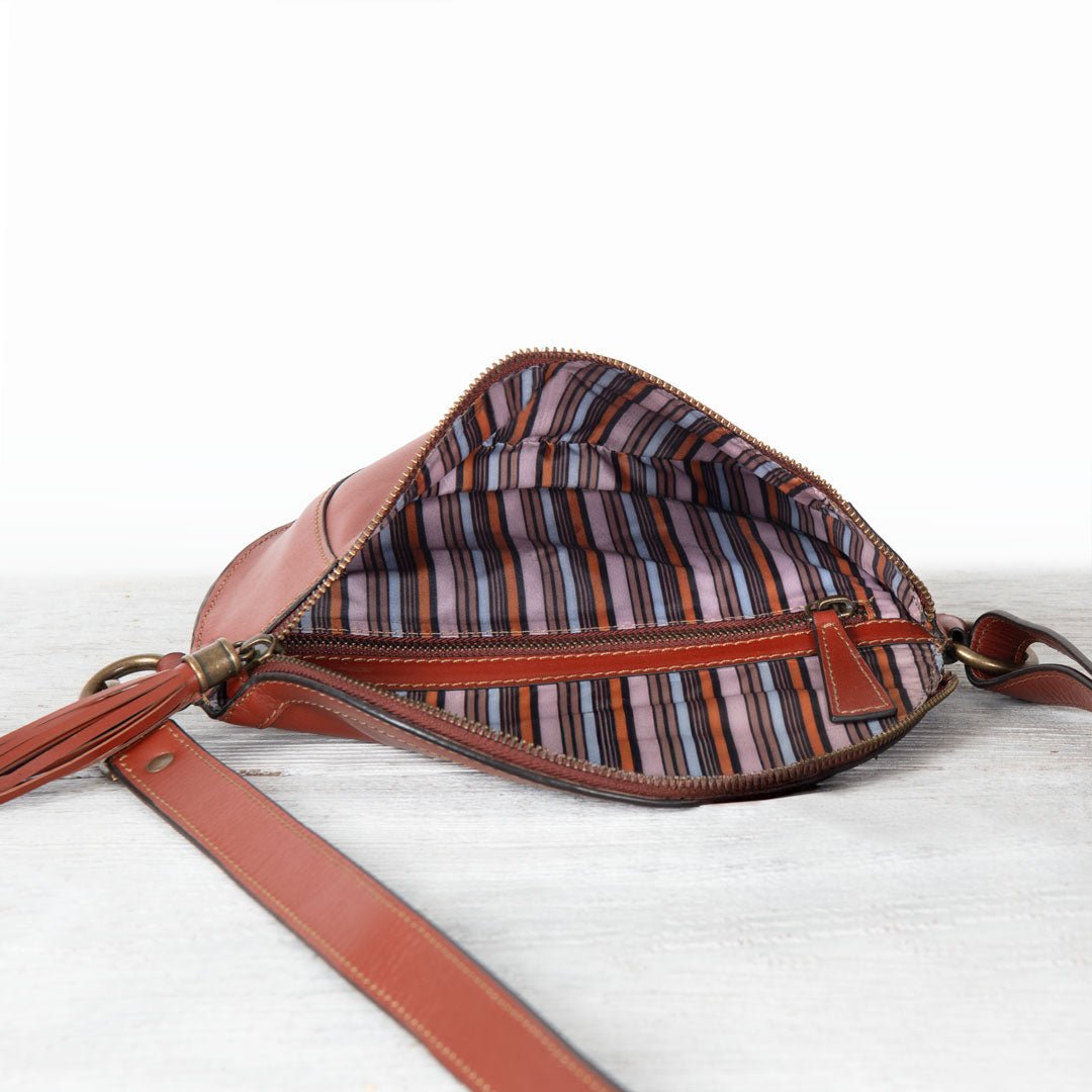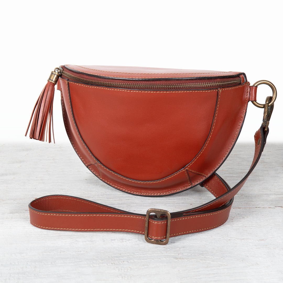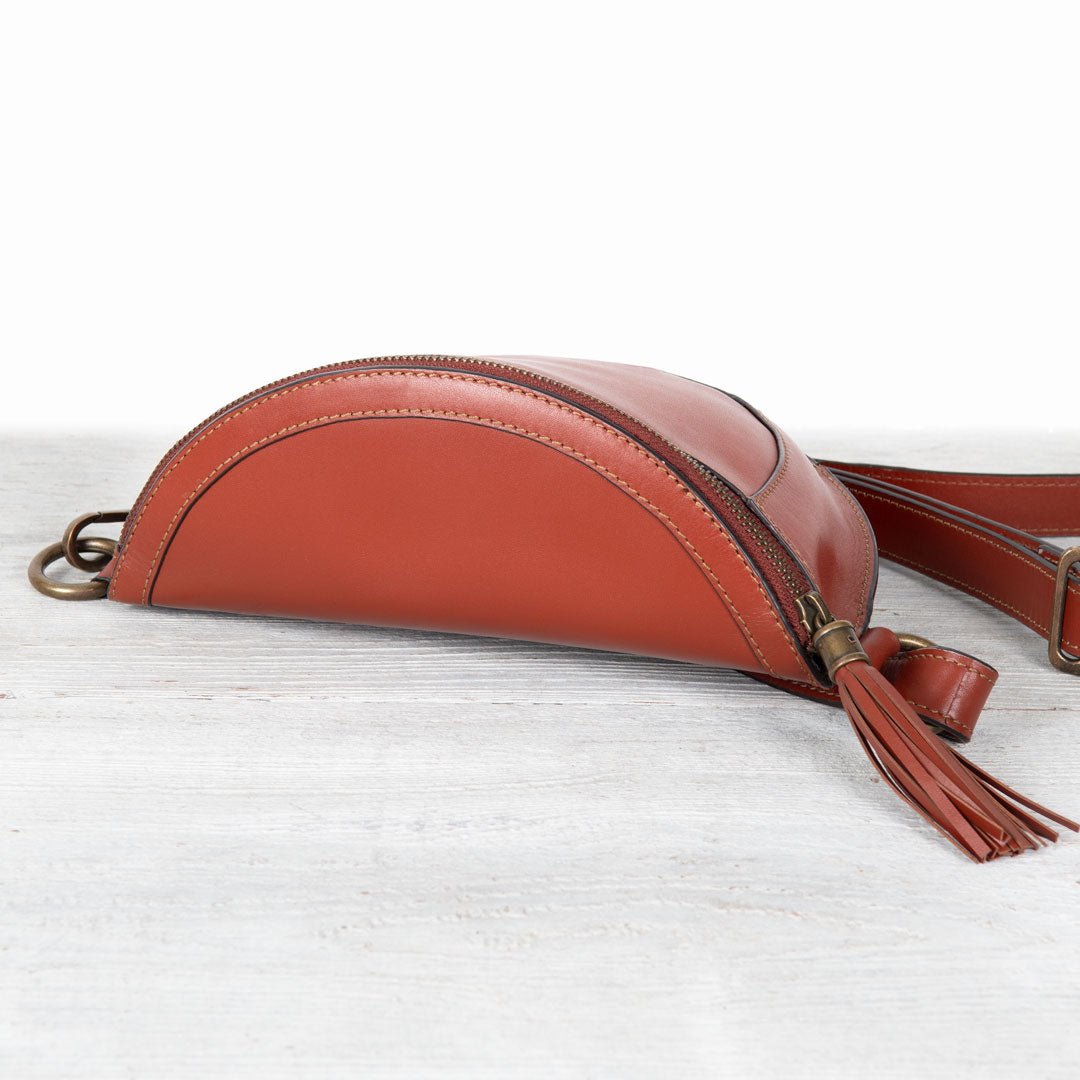 From Hayloft to Happy Hour, the Sonoma Sling Bag in Cognac Italian Leather by Urban-Equestrian brings warm, refined style to horse girls and fashionistas alike. Crafted in supple Italian leather with classic brass hardware, this sculpted, body-skimming sling is a standout horse lover gift. An adjustable strap, smooth zip closure, and smart interior pockets make it the perfect equestrian-inspired everyday essential.