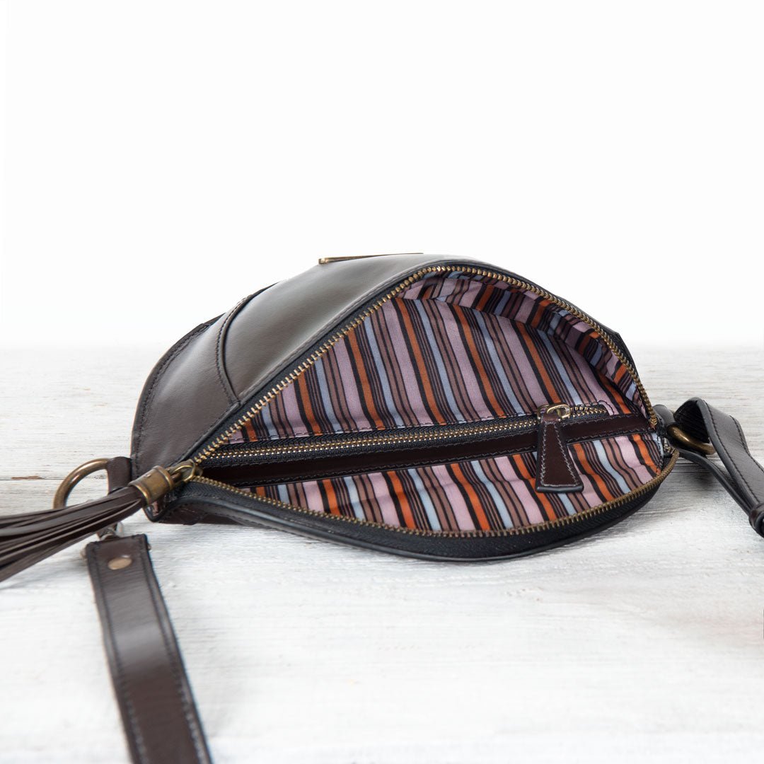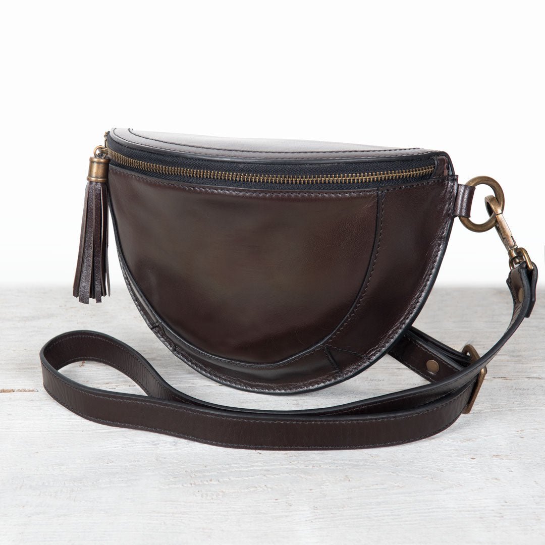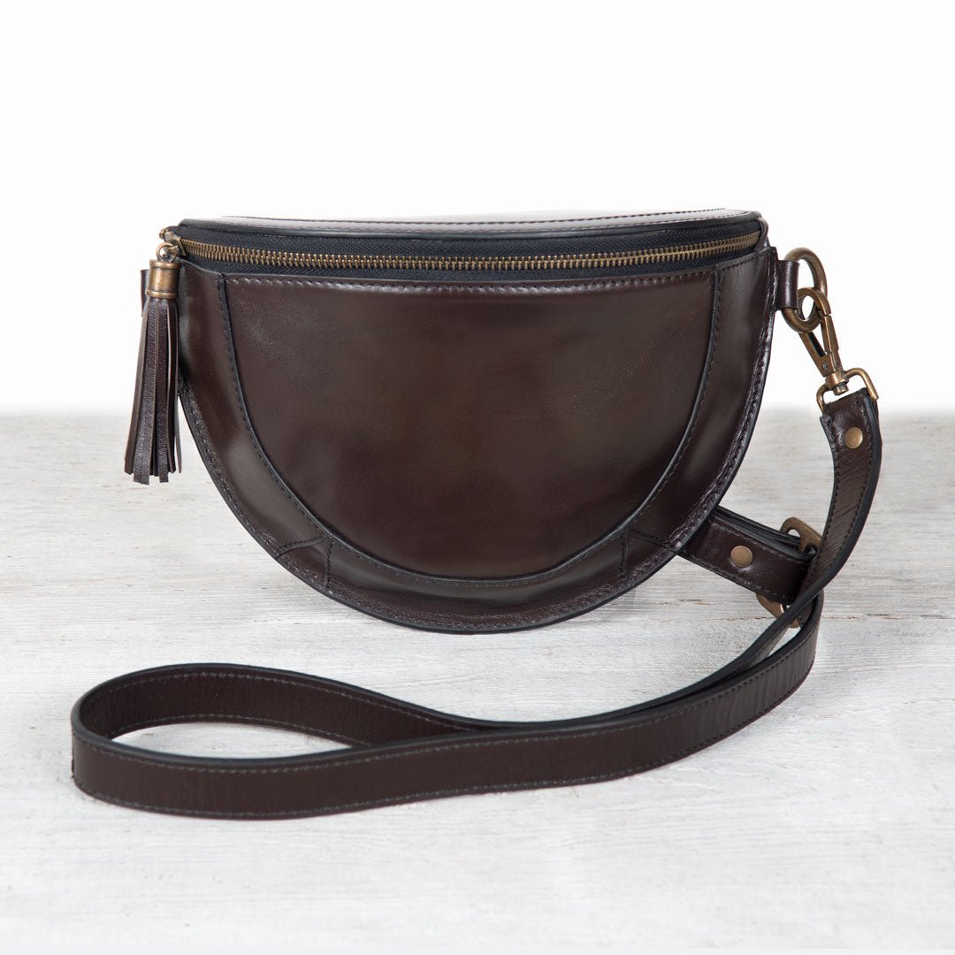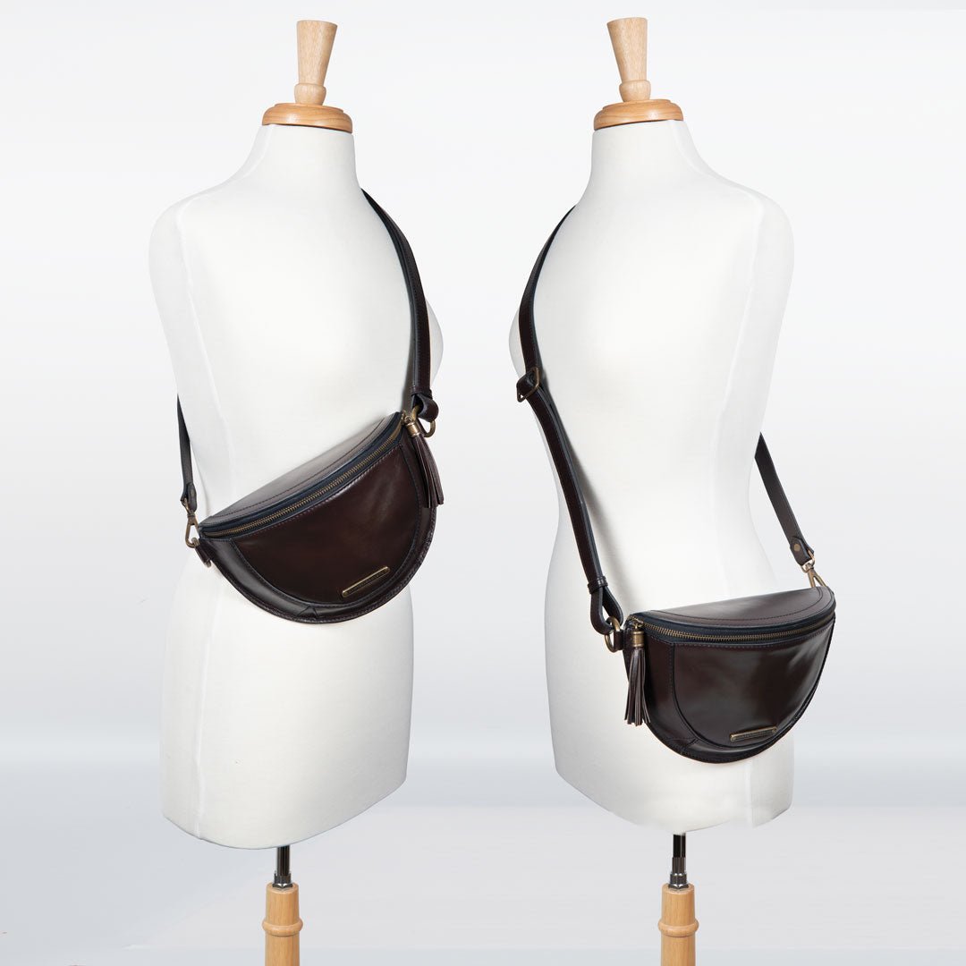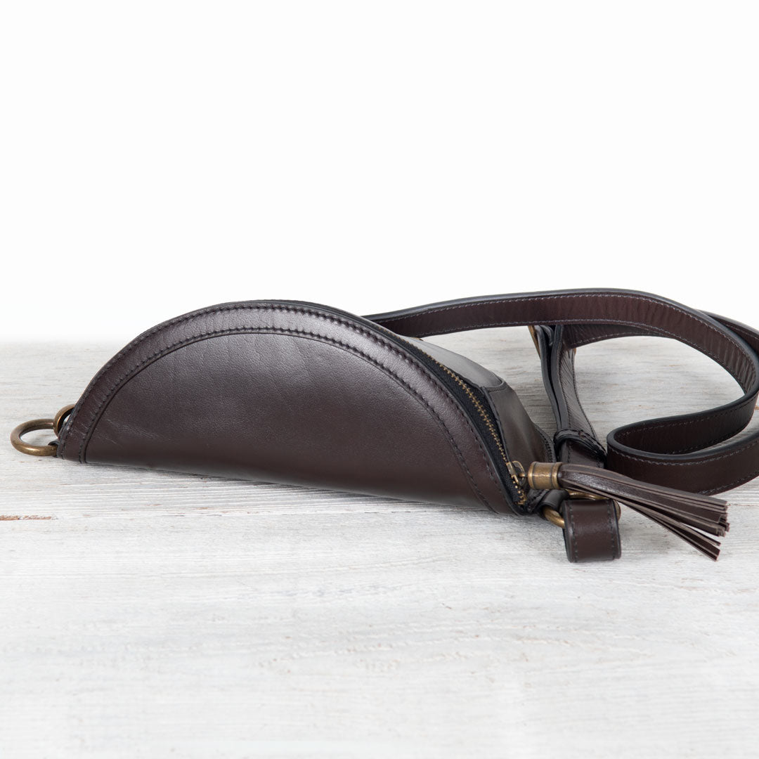 From Barn to Brunch, the Sonoma Sling Bag in Deep Brown Italian Leather by Urban-Equestrian blends rich, earthy elegance with everyday ease for horse girls and fashionistas. Crafted in supple Italian leather with warm brass hardware, this sculpted sling is a standout horse lover gift. An adjustable strap, secure zip closure, and smart interior pockets make it the perfect equestrian-inspired essential.