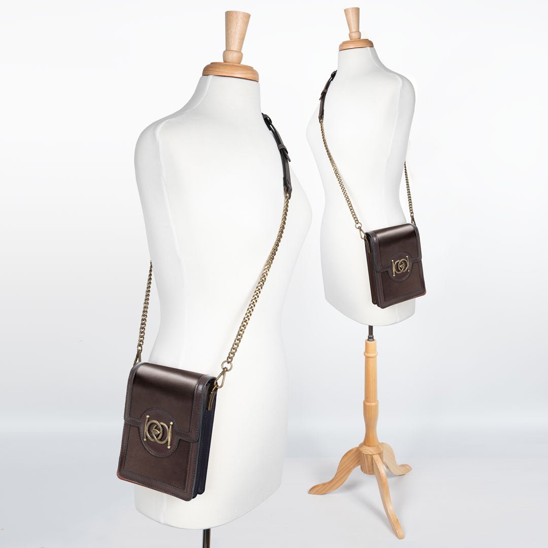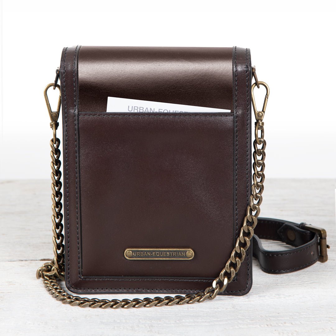 Gallop to Gala, the Talisman Horse Bit Lock Phone Bag in Brown by URBAN-EQUESTRIAN redefines modern equestrian chic. Crafted in supple brown Italian leather, this versatile crossbody highlights our signature Horse Bit Talisman logo lock—a symbol of heritage and style. The Curb Chain & Leather shoulder strap adds a bold, elegant edge, while inside, a zip pouch and card slots keep essentials organized. With its magnetic closure and polished silhouette, this equestrian leather phone bag makes an unforgettable horse lover gift.