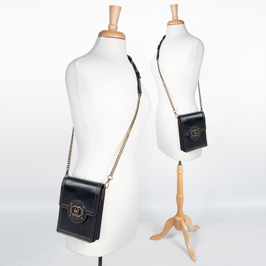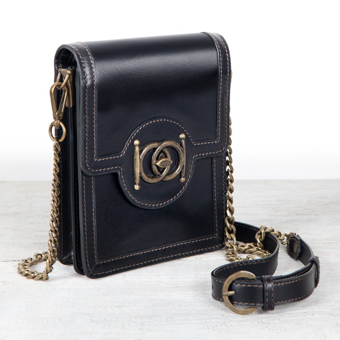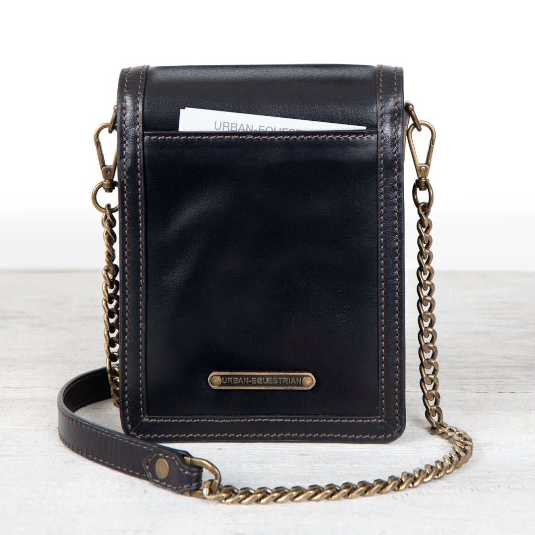 Gallop to Gala, the Talisman Horse Bit Lock Phone Bag in Black by URBAN-EQUESTRIAN strikes a balance between bold sophistication and timeless equestrian detail. Sculpted from smooth black Italian leather, this elevated crossbody commands attention with our iconic Horse Bit Talisman logo lock—a signature of strength and refinement. The Curb Chain & Leather shoulder strap brings a touch of edge to its sleek silhouette, while inside, card slots and a zip pouch offer refined function. A modern equestrian leather phone bag and exquisite horse lover gift for any occasion.