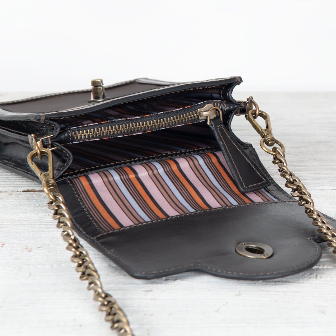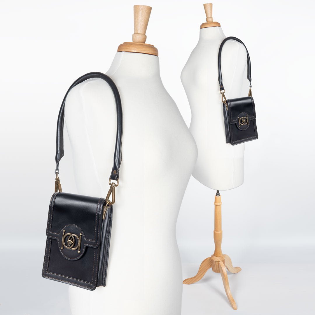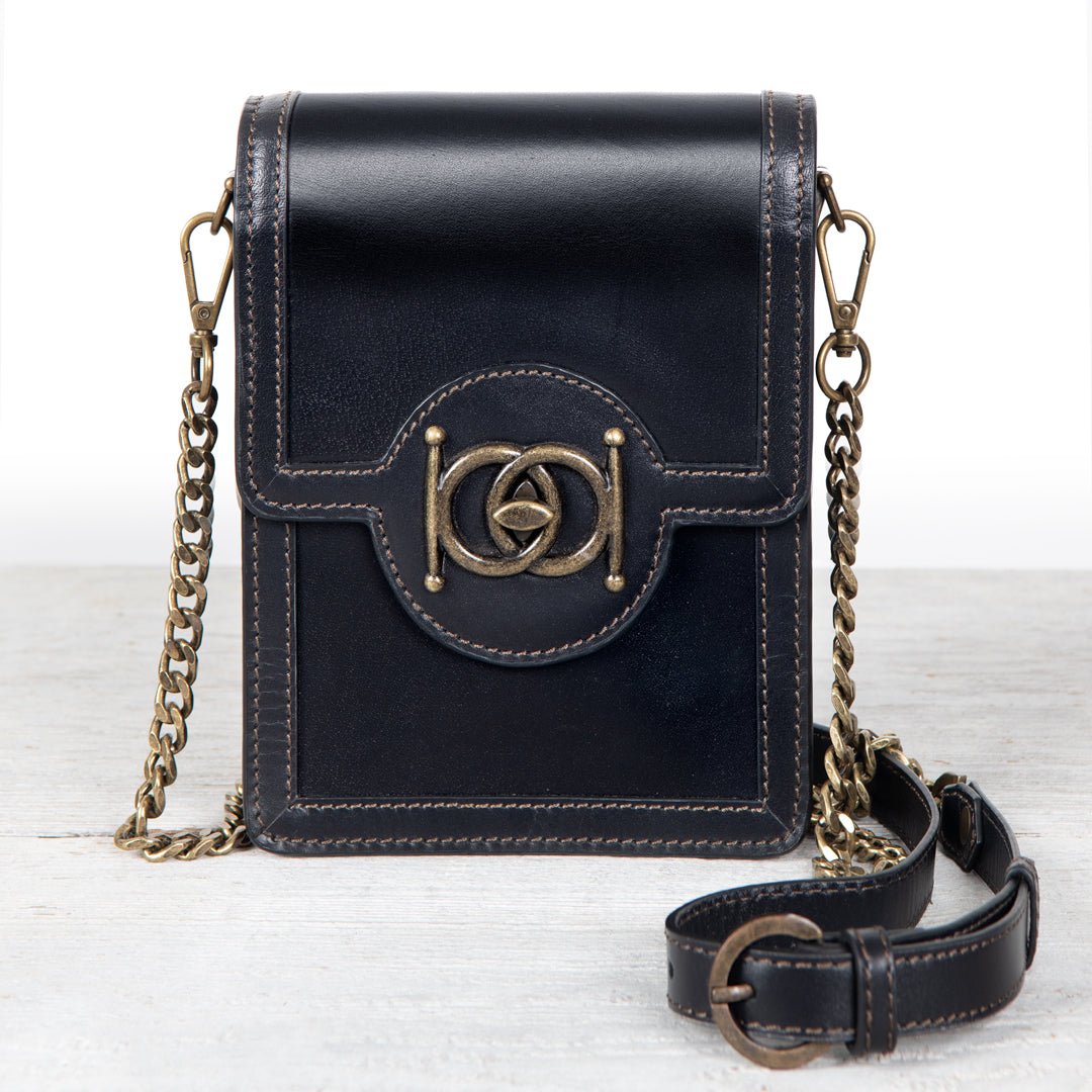 Gallop to Gala, the Talisman Horse Bit Lock Phone Bag in Black by URBAN-EQUESTRIAN strikes a balance between bold sophistication and timeless equestrian detail. Sculpted from smooth black Italian leather, this elevated crossbody commands attention with our iconic Horse Bit Talisman logo lock—a signature of strength and refinement. The Curb Chain & Leather shoulder strap brings a touch of edge to its sleek silhouette, while inside, card slots and a zip pouch offer refined function. A modern equestrian leather phone bag and exquisite horse lover gift for any occasion.