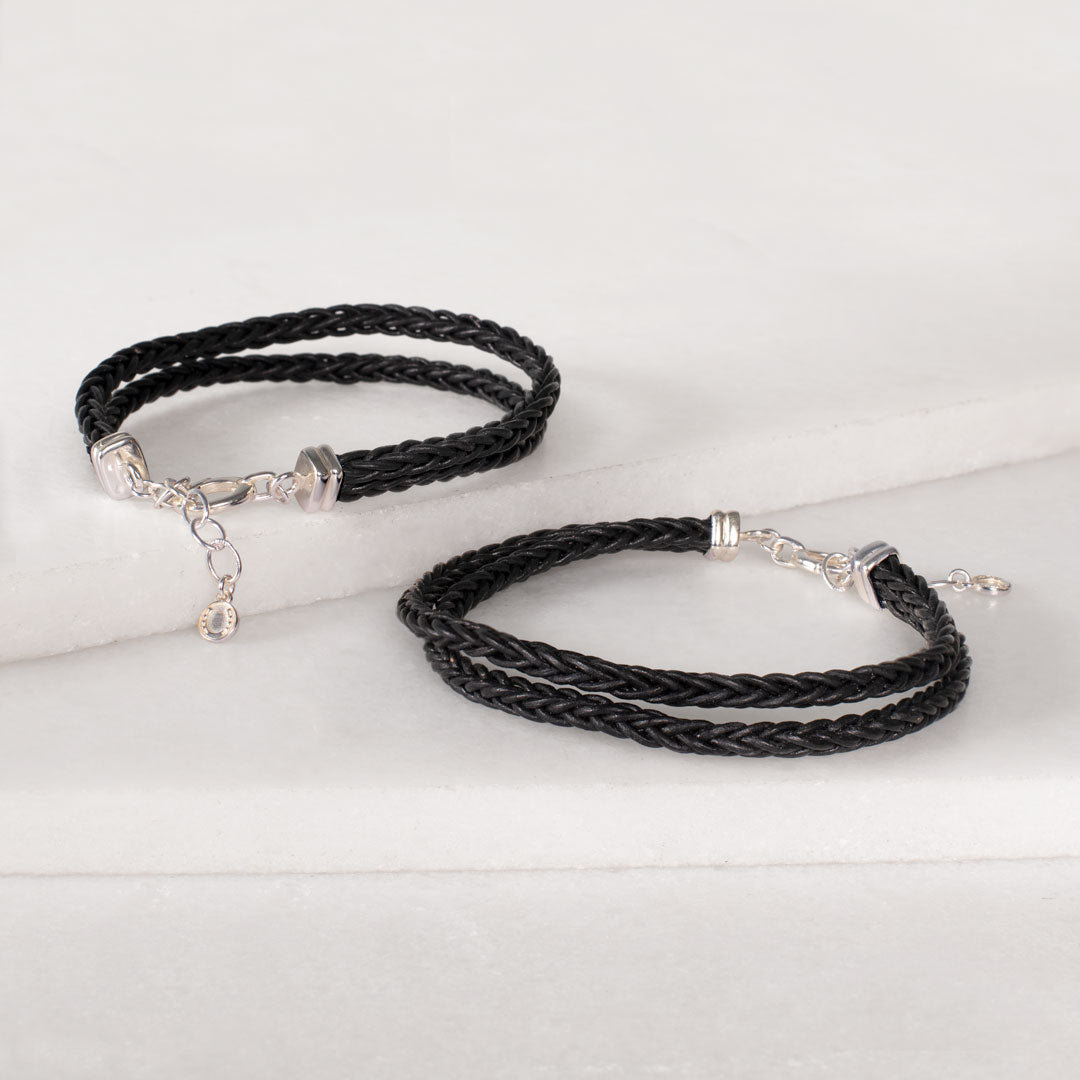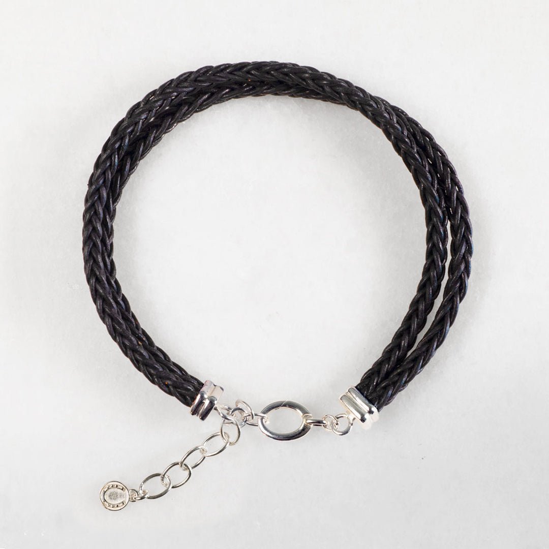 Tally - Braided Leather Horseshoe Coin Bracelet in Black