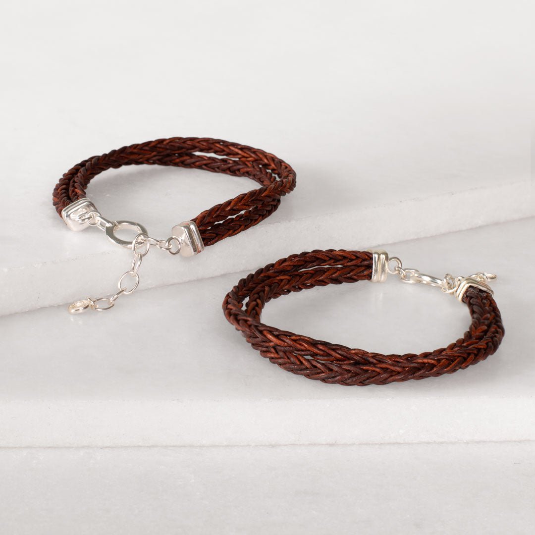 Tally - Braided Leather Horseshoe Coin Bracelet in Brown
