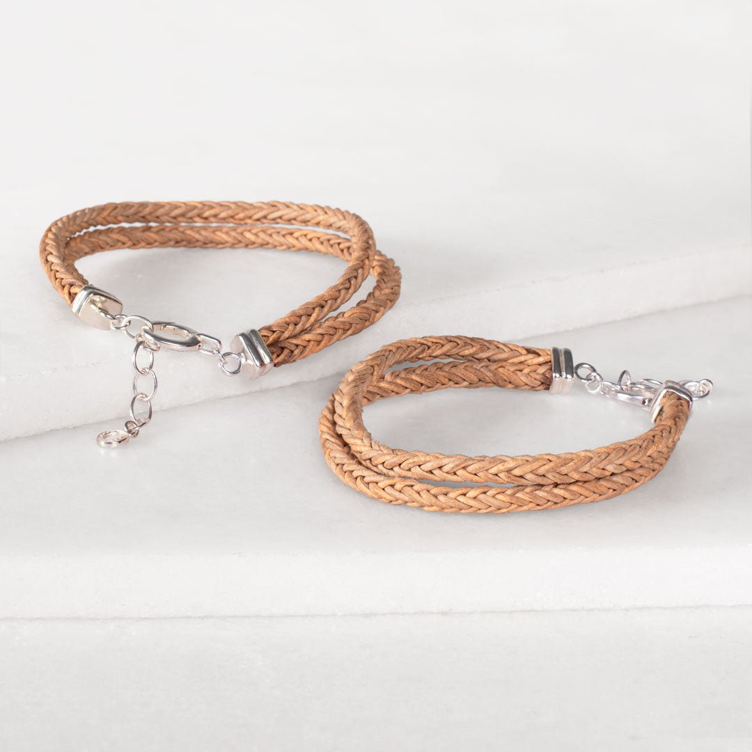Tally - Braided Leather Horseshoe Coin Bracelet in Natural